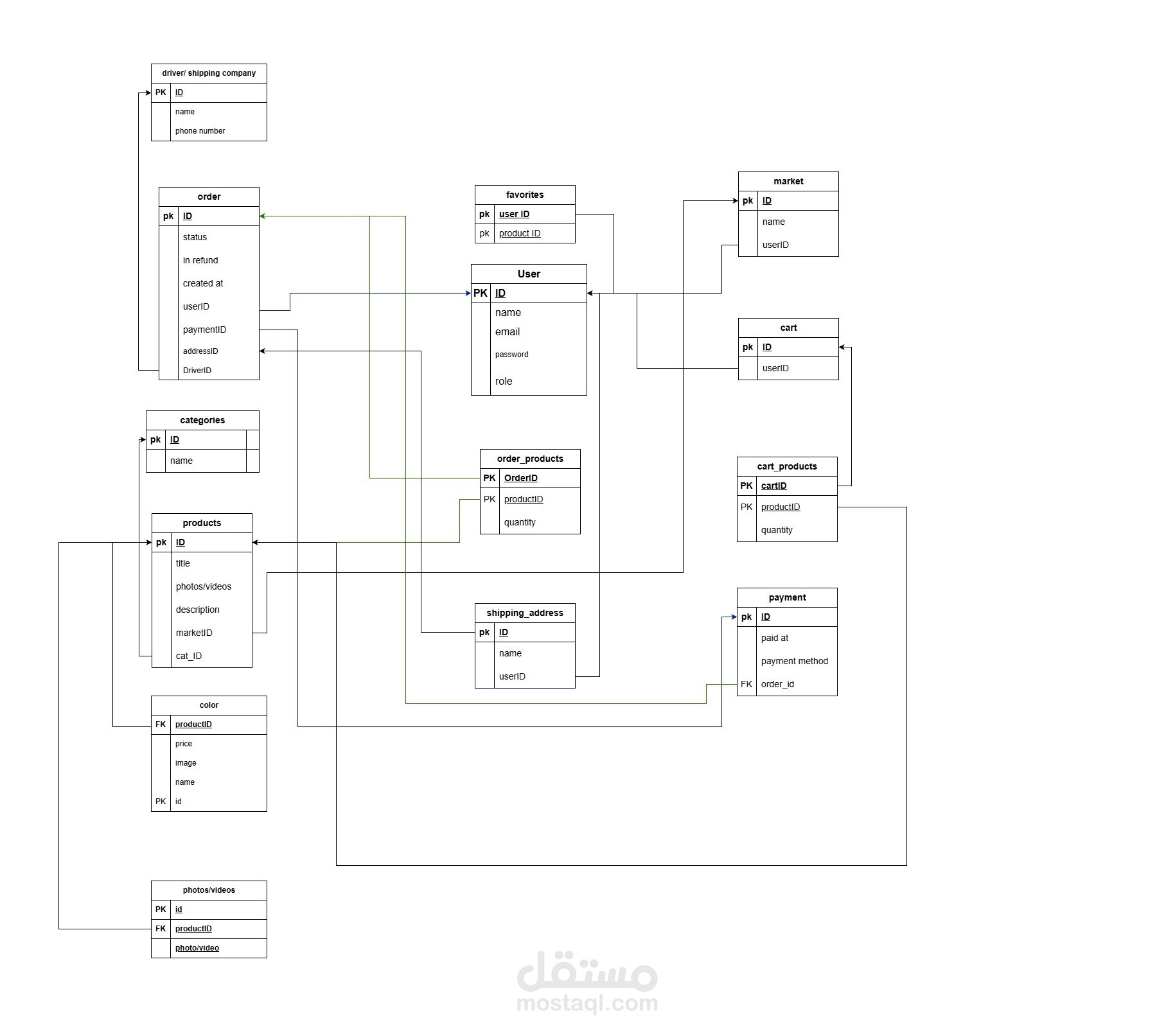 Designed the system to support key features such as multi-market product listing, category organization, shipping address management, and driver/shipping company integration.