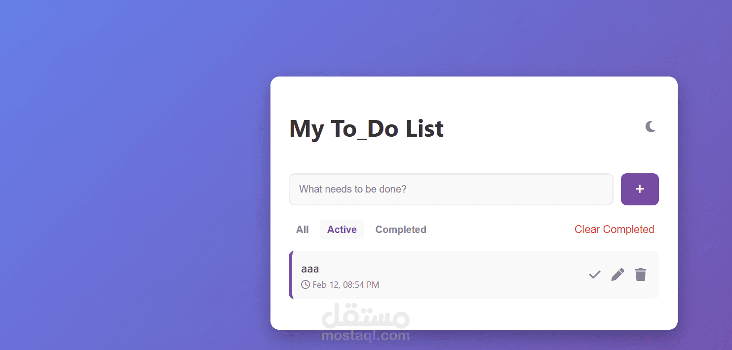- فلترة ذكية بين كل المهام أو النشطة أو المكتملة