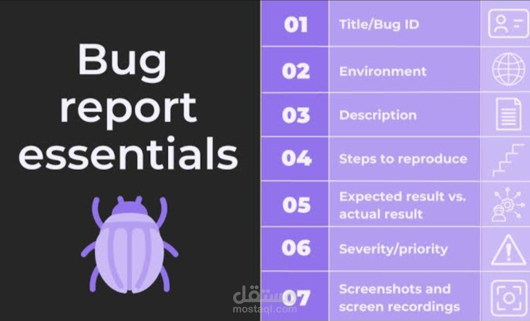 قمت بكتابة تقارير أخطاء لموقع إلكتروني بشكل منظم وواضح لمساعدة المطور على فهم المشكلة بسهولة.