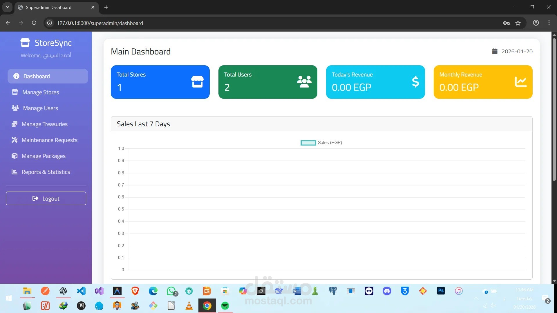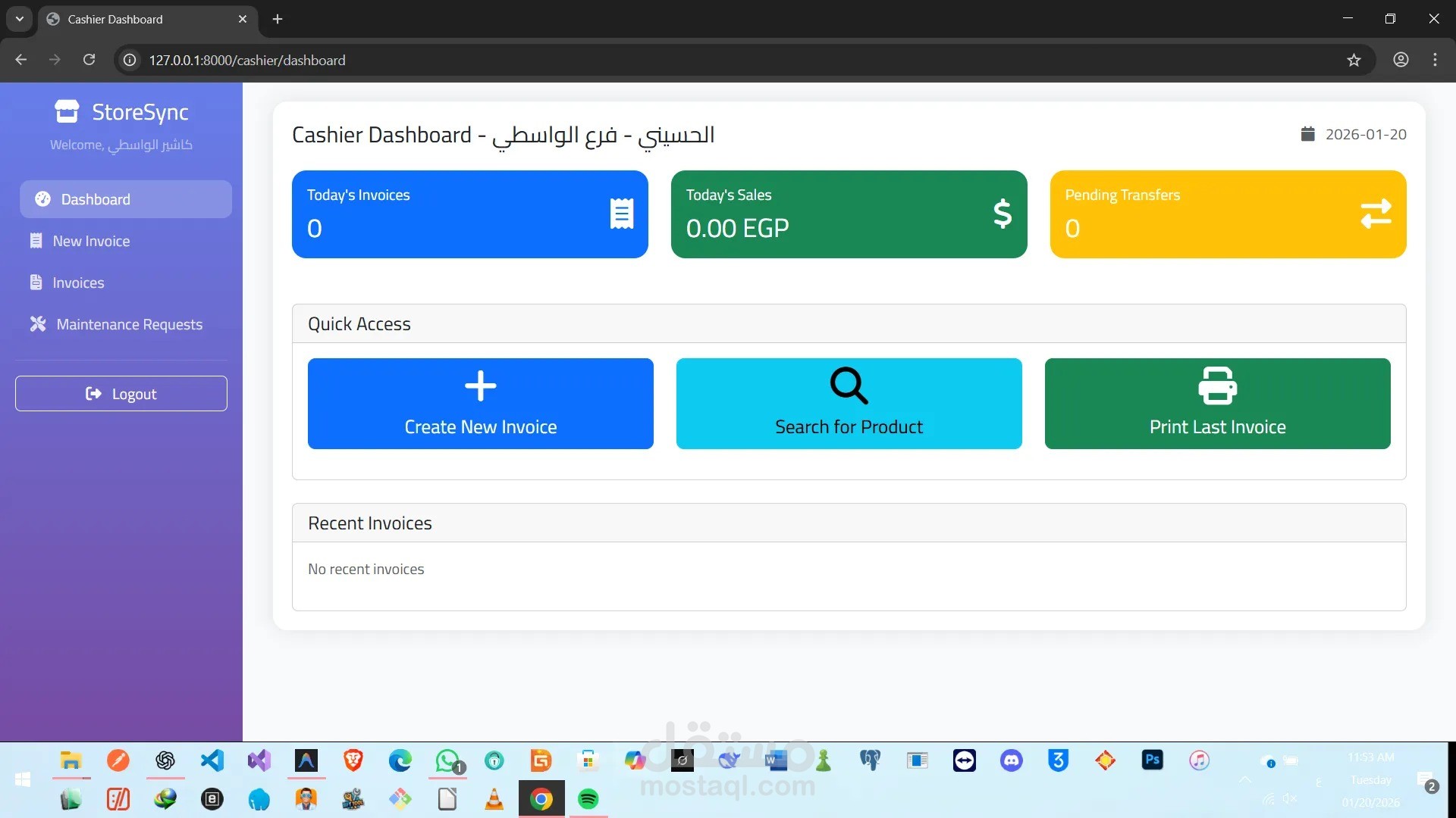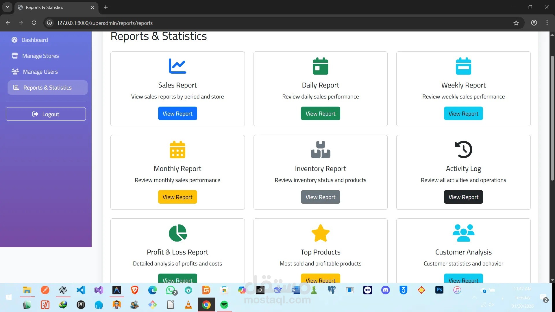 تطبيق Laravel شامل ومتطور لإدارة المتاجر متعددة المستخدمين. يدير المشرفون الرئيسيون عدة متاجر، بينما يتولى المشرفون وأمناء الصندوق إدارة العمليات اليومية والمنتجات والمبيعات والفواتير.