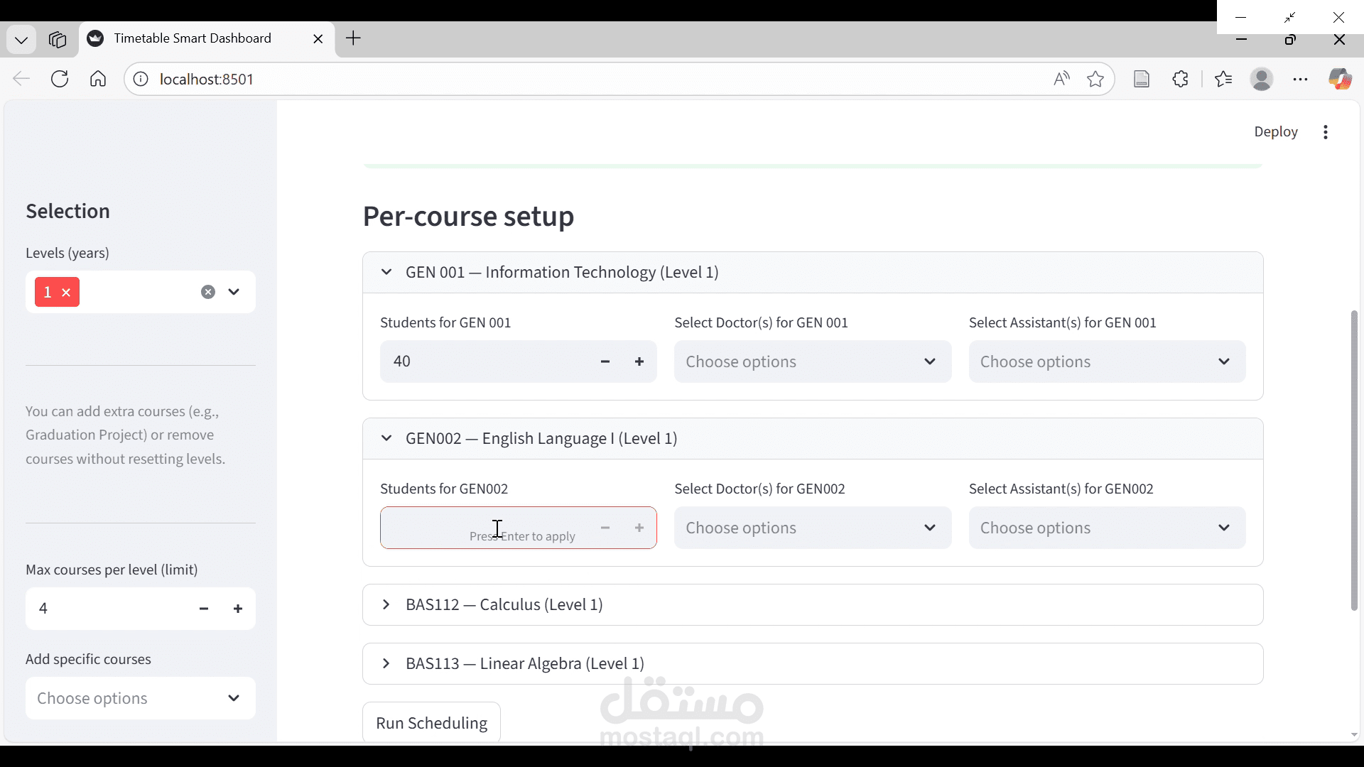 The Smart Timetable Scheduling System is an intelligent academic scheduling solution designed to automatically generate optimized university timetables while minimizing conflicts and improving resource utilization. The system replaces manual scheduling with an AI-driven approach that ensures fairness, efficiency, and scalability.