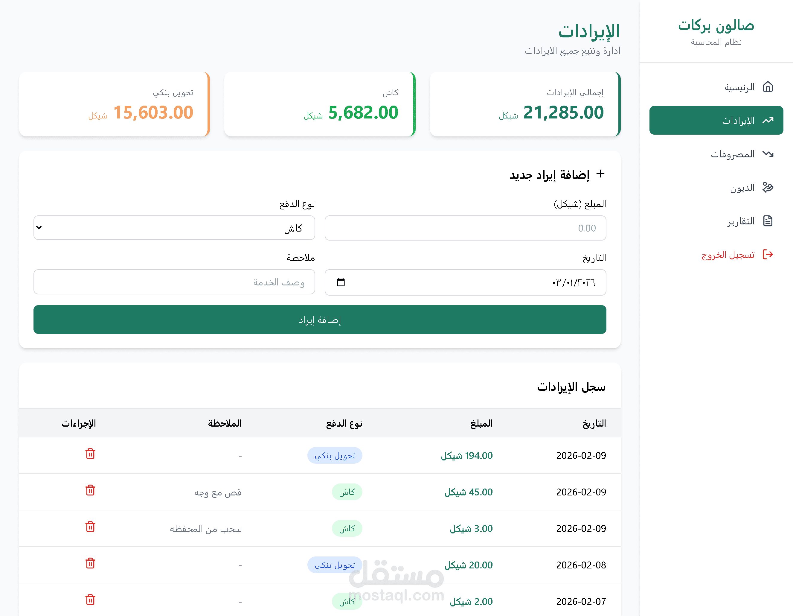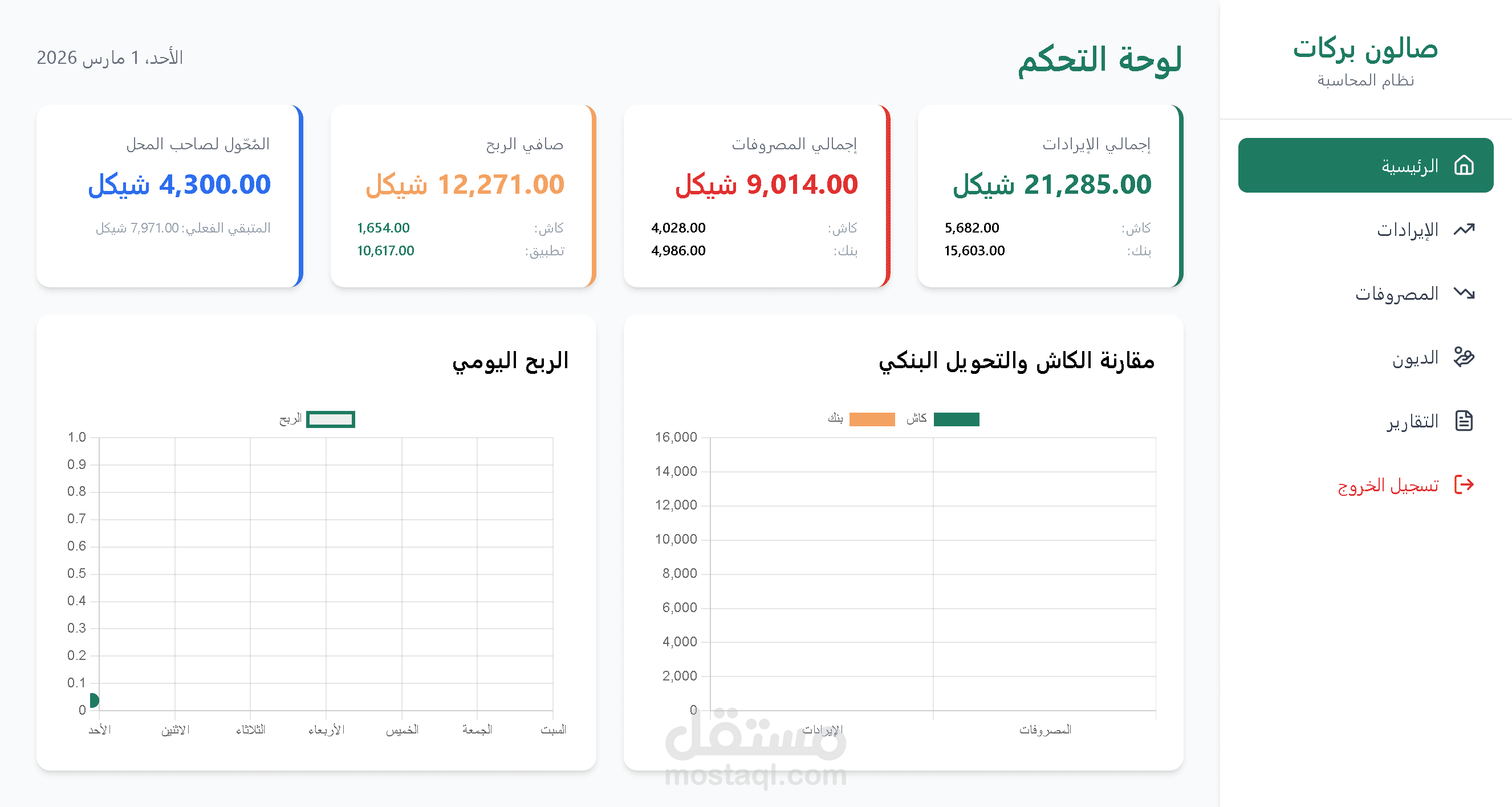 تخيّل أن كل شيء في مشروعك تحت سيطرة كاملة: المبيعات، المصاريف، العملاء، والديون، كلها منظمة ومرتبة بدقة لمساعدتك على النجاح الفوري. هذا النظام ليس مجرد أداة، بل هو شريكك الذكي لإدارة كل جانب من أعمالك التجارية بثقة واحترافية.