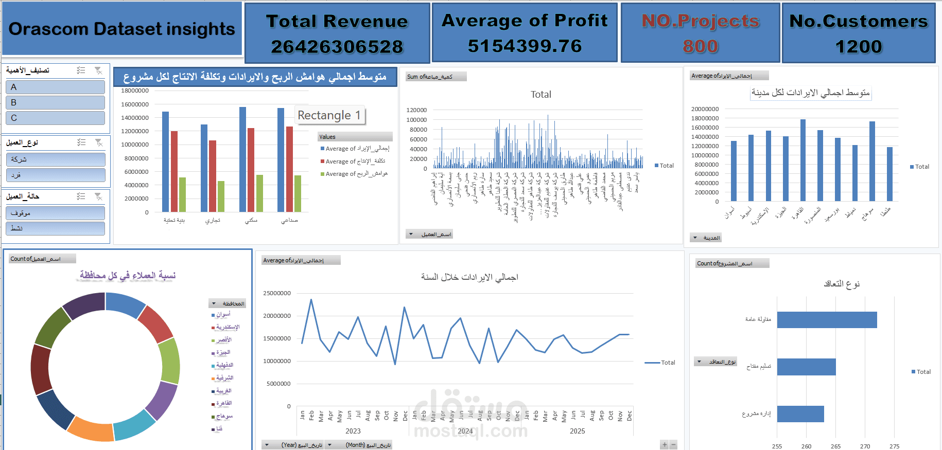 قمت بتحليل البيانات علي اكسل وتنضيفها والربط بين الجداول وبعضها البعض واستخراج insights مفيدة ووضعها في داشبورد معبرة