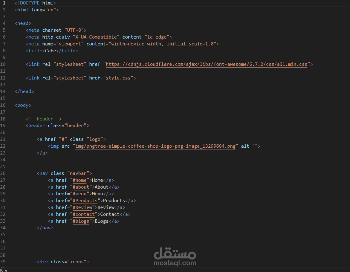 قمت بتصميم وتطوير موقع إلكتروني متكامل لكافيه يهدف إلى عرض المنيو والعروض بطريقة جذابة وسهلة الاستخدام، مع تجربة مستخدم عصرية ومتوافقة مع جميع الأجهزة (Responsive Design).