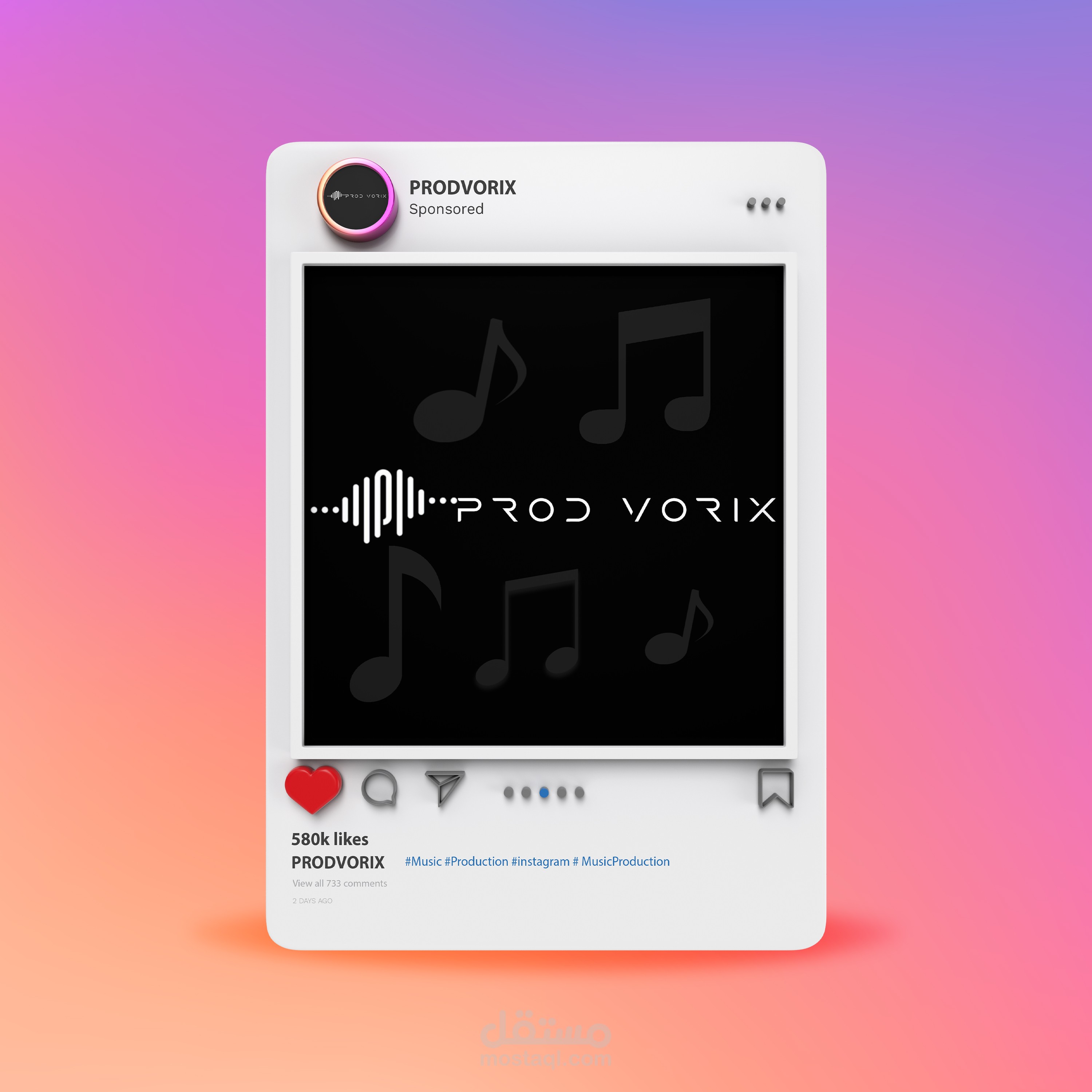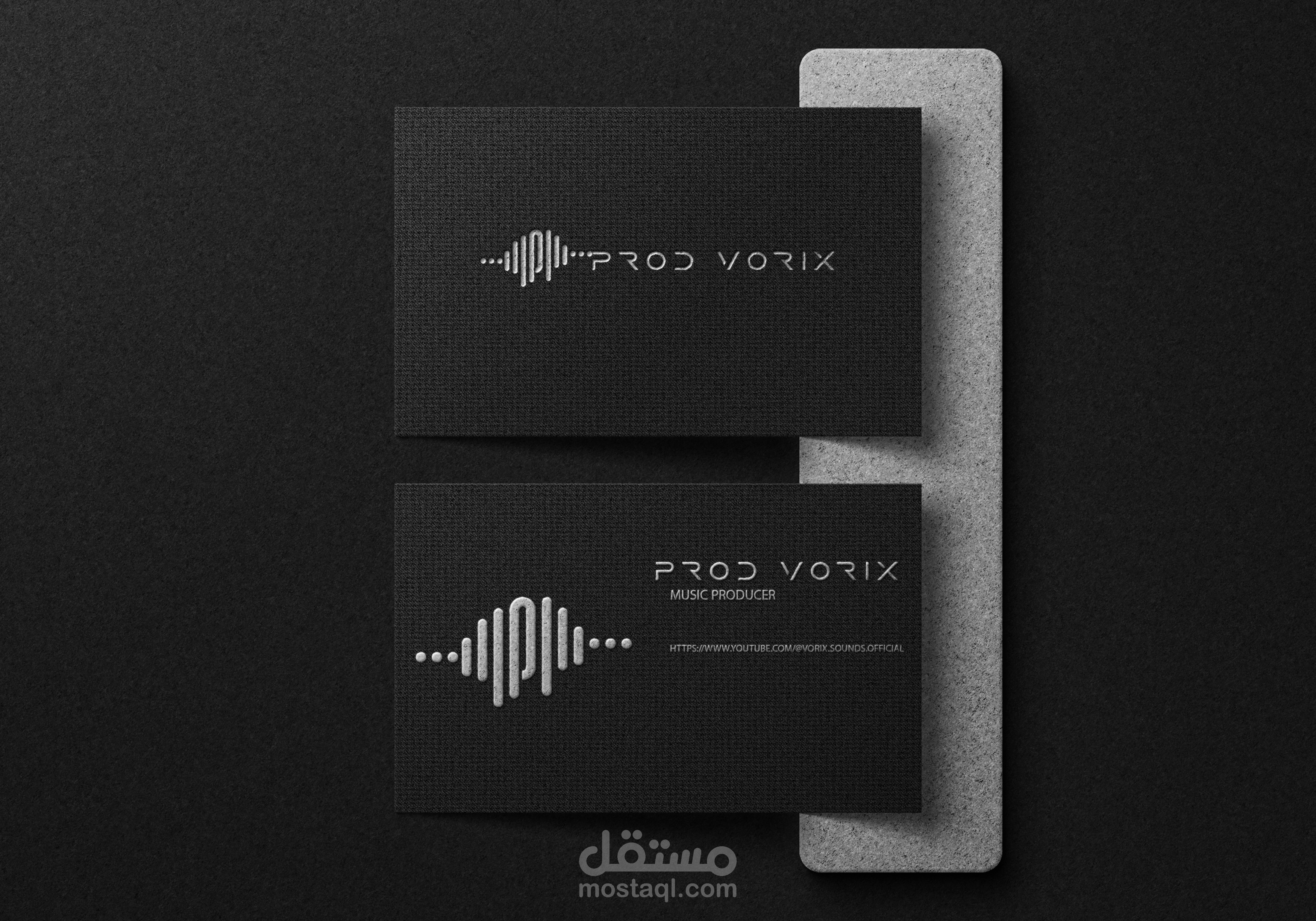 تصميم لوجو لقناة يوتيوب "Prod Vorix" لإنشاء المقاطع الموسيقية و تطبيقه على عدة تطبيقات عملية.