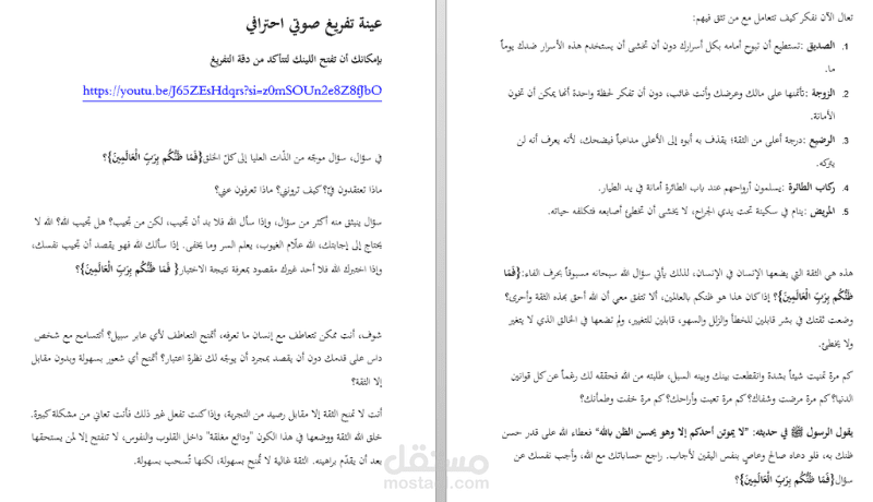 قمت بتحويل مقطع يوتيوب (درس وعظي صغير) إلى مستند نصي (Word ) بدقة عالية واحترافية متناهية. لم يكن العمل مجرد كتابة، بل شمل تنقيحاً لغوياً وتنظيماً يسهل القراءة.