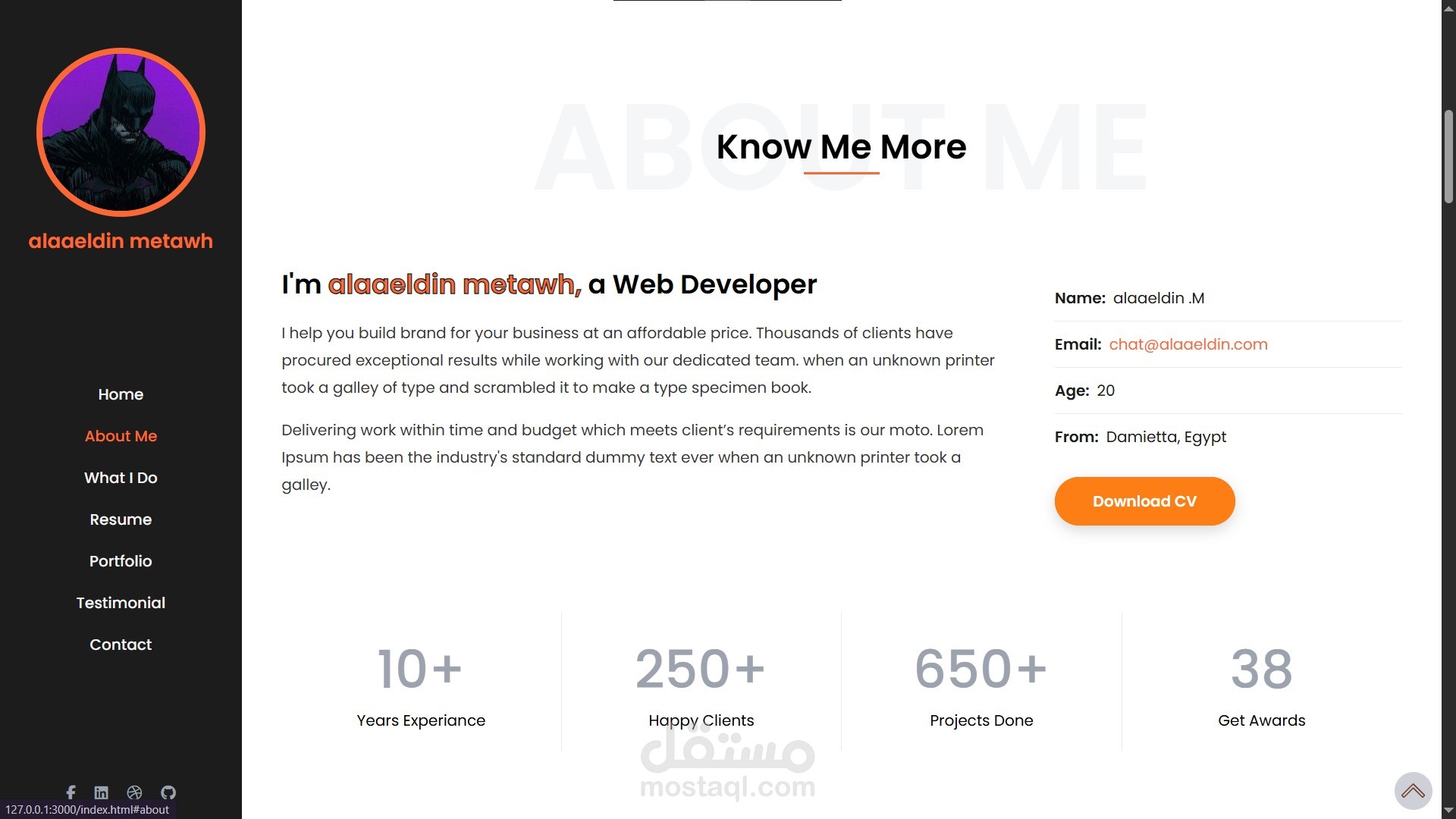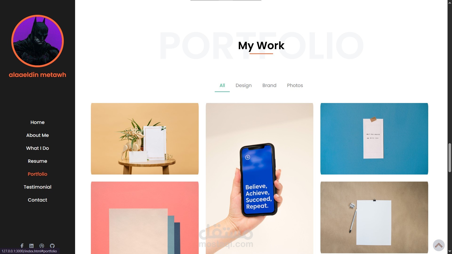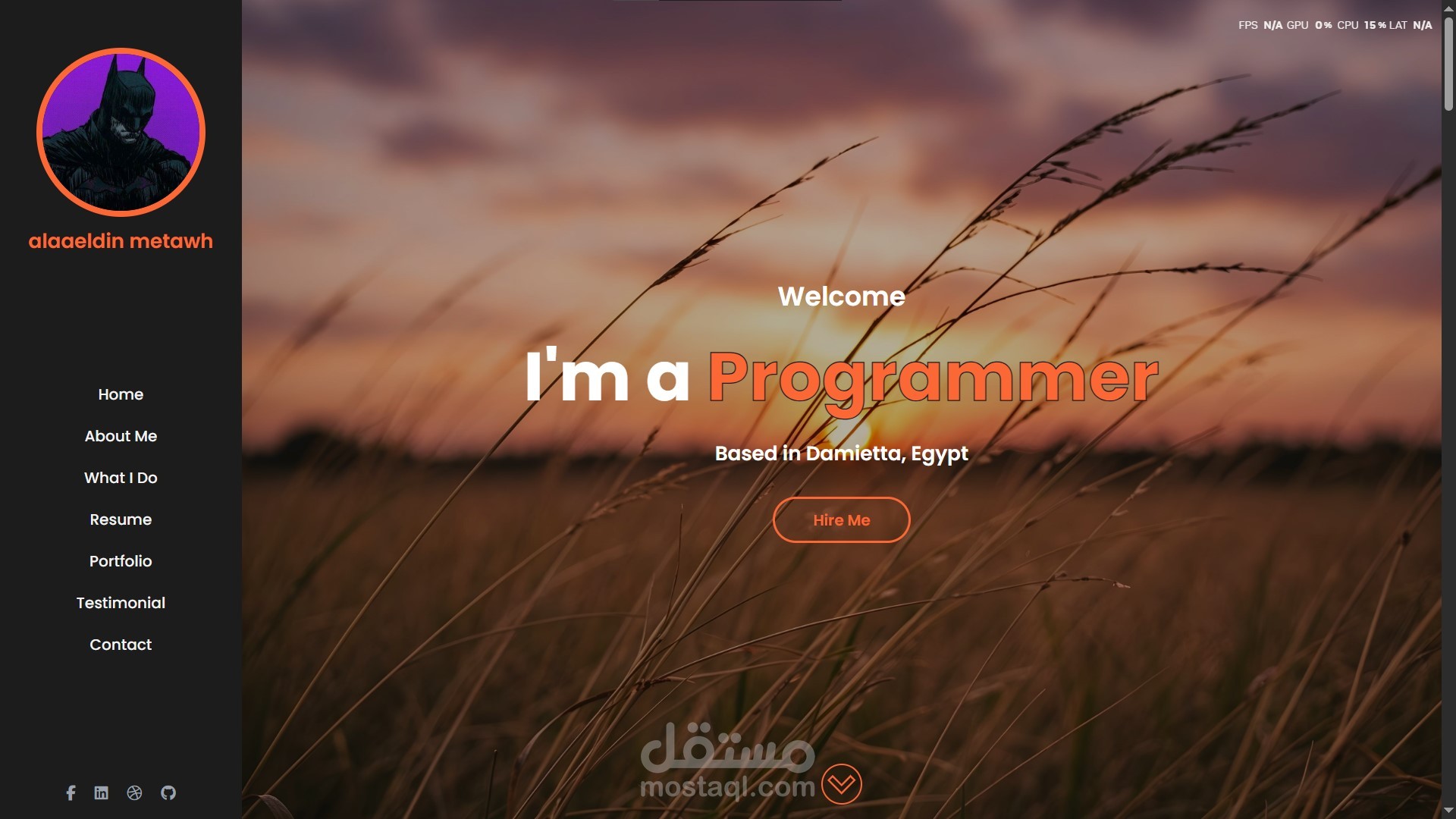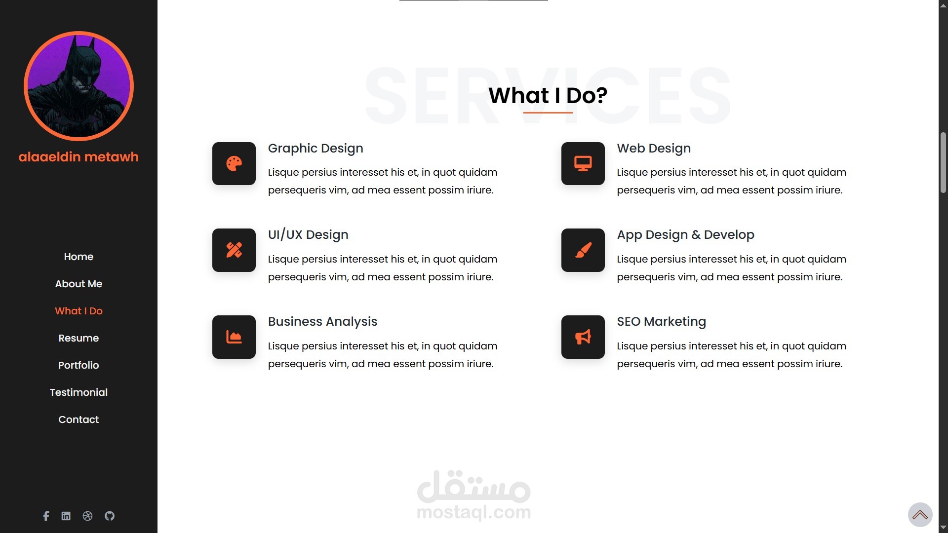 Home – About Me – What I Do – Resume – Portfolio – Testimonial – Contact