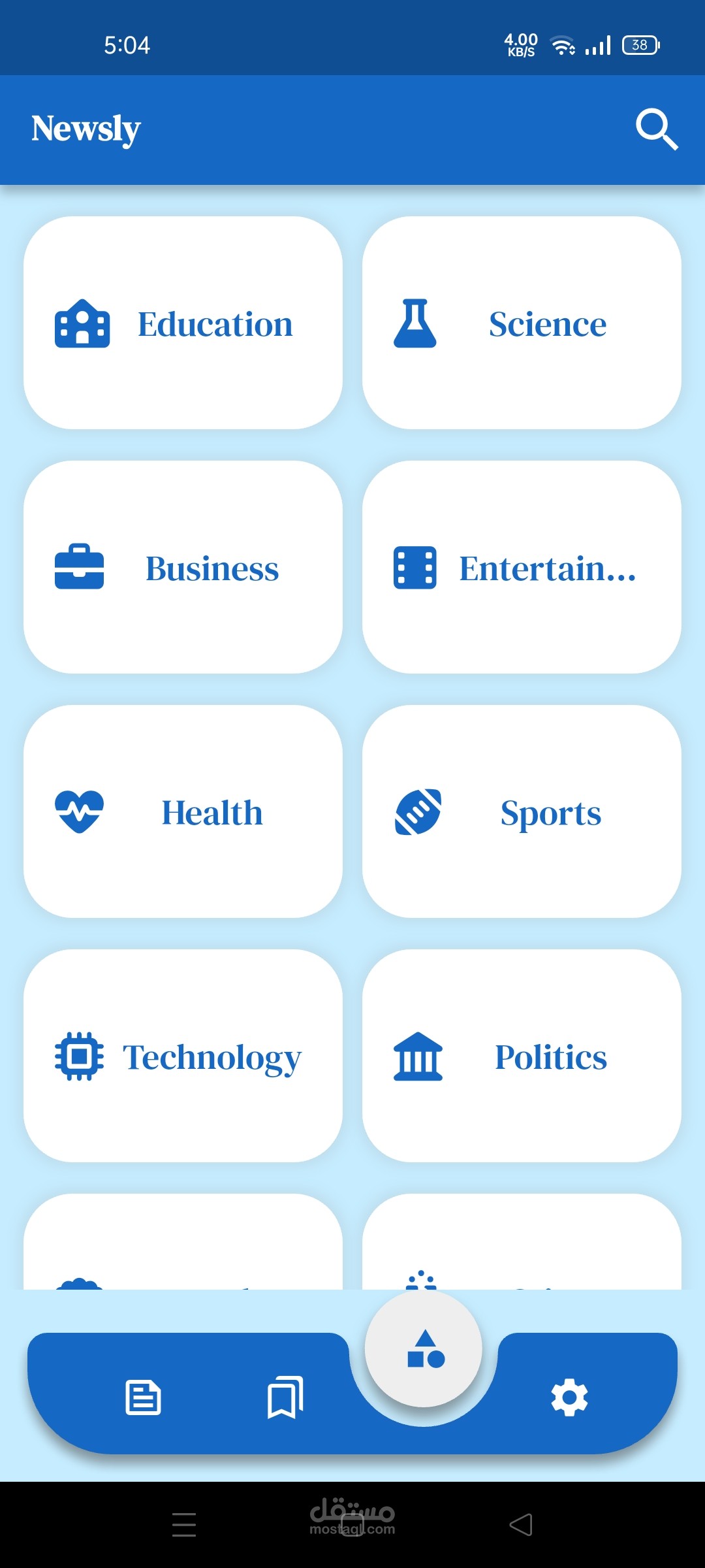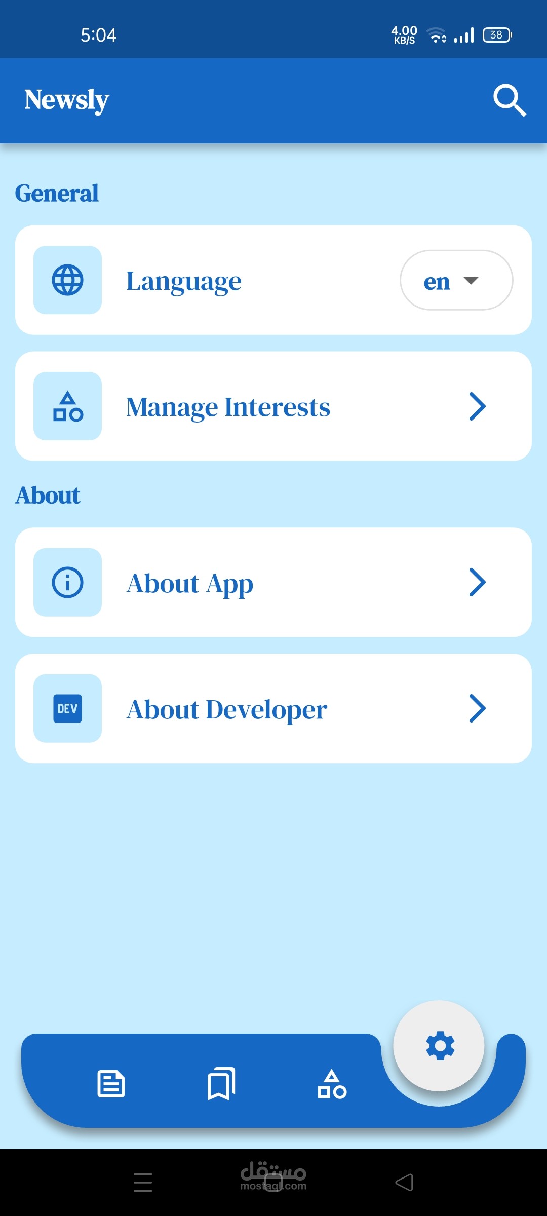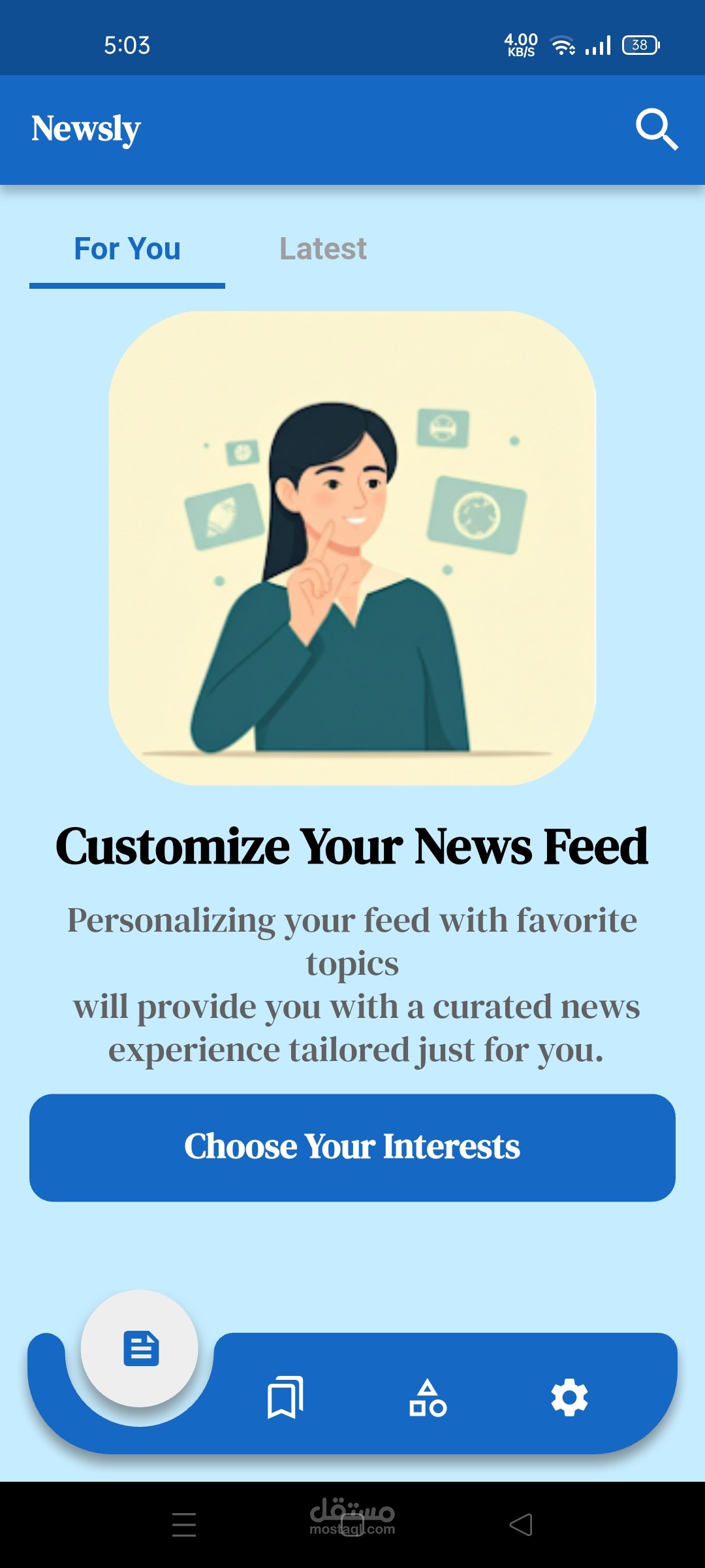 -عند أول استخدام للتطبيق، يختار المستخدم اهتماماته (مثل: رياضة، تقنية، اقتصاد…).