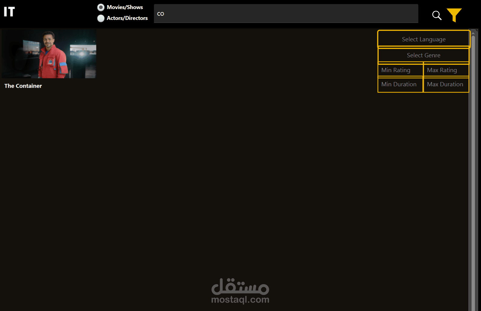 نظام بحث وفلترة متقدم يعتمد على التصنيف (Genre)، اللغة، التقييم، أو طاقم العمل.