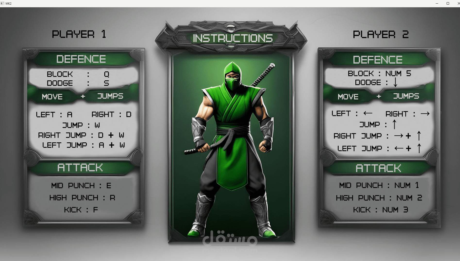 لعبة فيديو قتالية بسيطة تم تطويرها باستخدام لغة ++C ومكتبة SFML للرسوميات. يركز المشروع على بناء محرك لعبة بسيط يعالج الرسوميات الثنائية الأبعاد (2D Graphics)