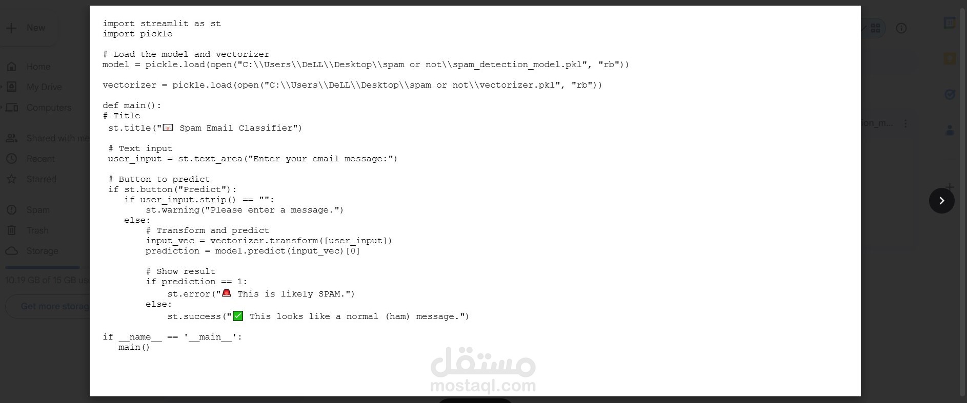 مشروع Spam Filter App هو تطبيق يعتمد على تقنيات معالجة اللغة الطبيعية (NLP) وتعلم الآلة لتصنيف الرسائل النصية أو البريد الإلكتروني إلى رسائل مزعجة (Spam) أو رسائل عادية (Ham).