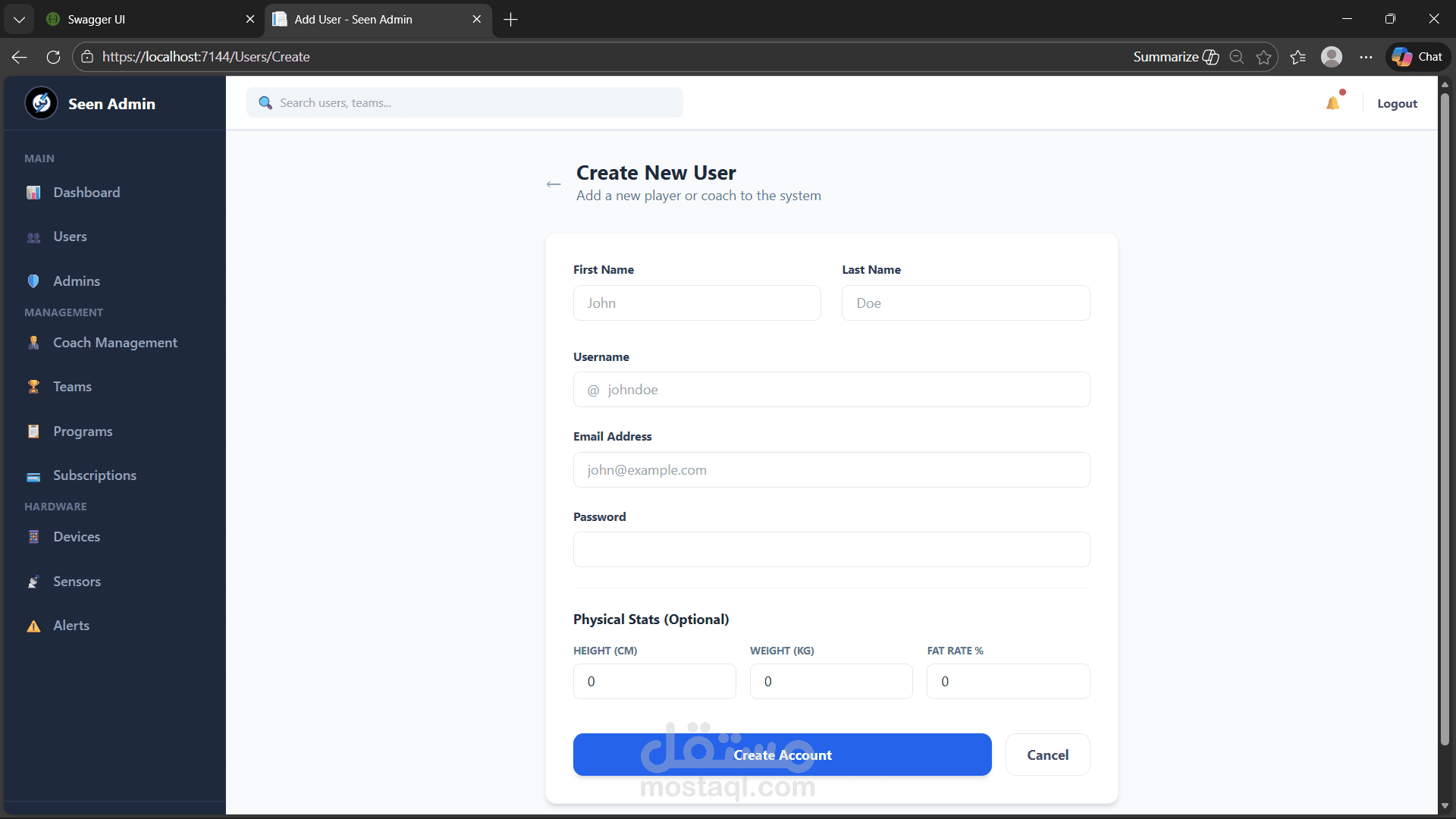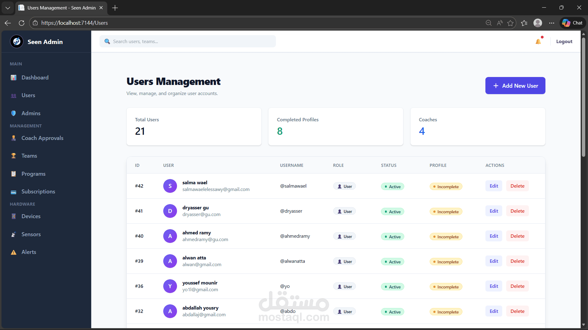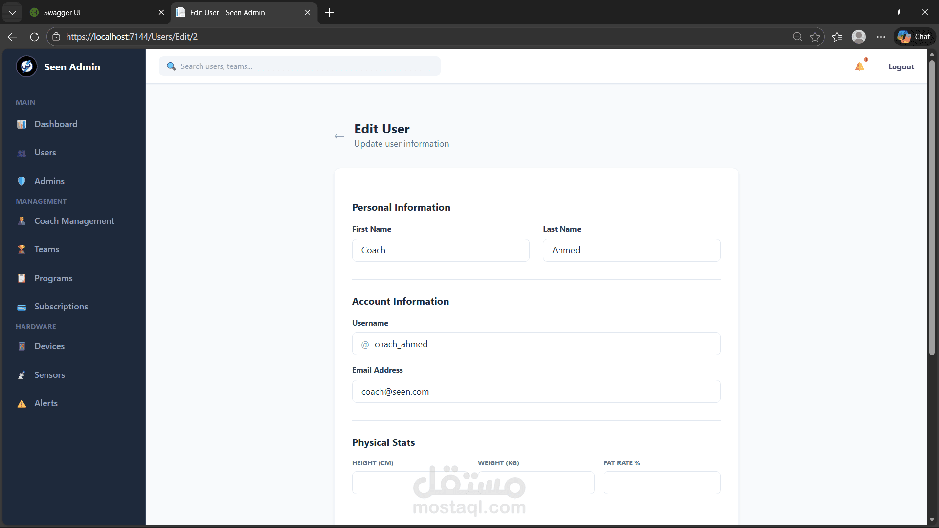 Built and structured the Admin Web Dashboard