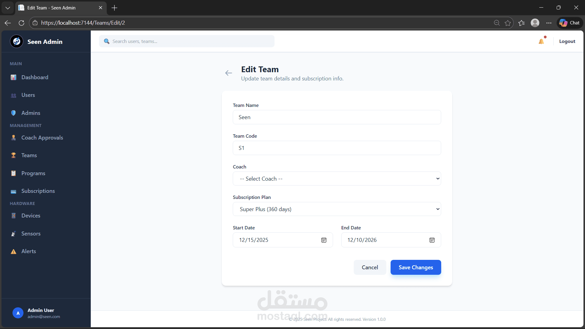 SEEN is a full-stack sports team management system designed to help coaches and players efficiently manage teams, subscriptions, training sessions, and notifications through a scalable and secure platform.