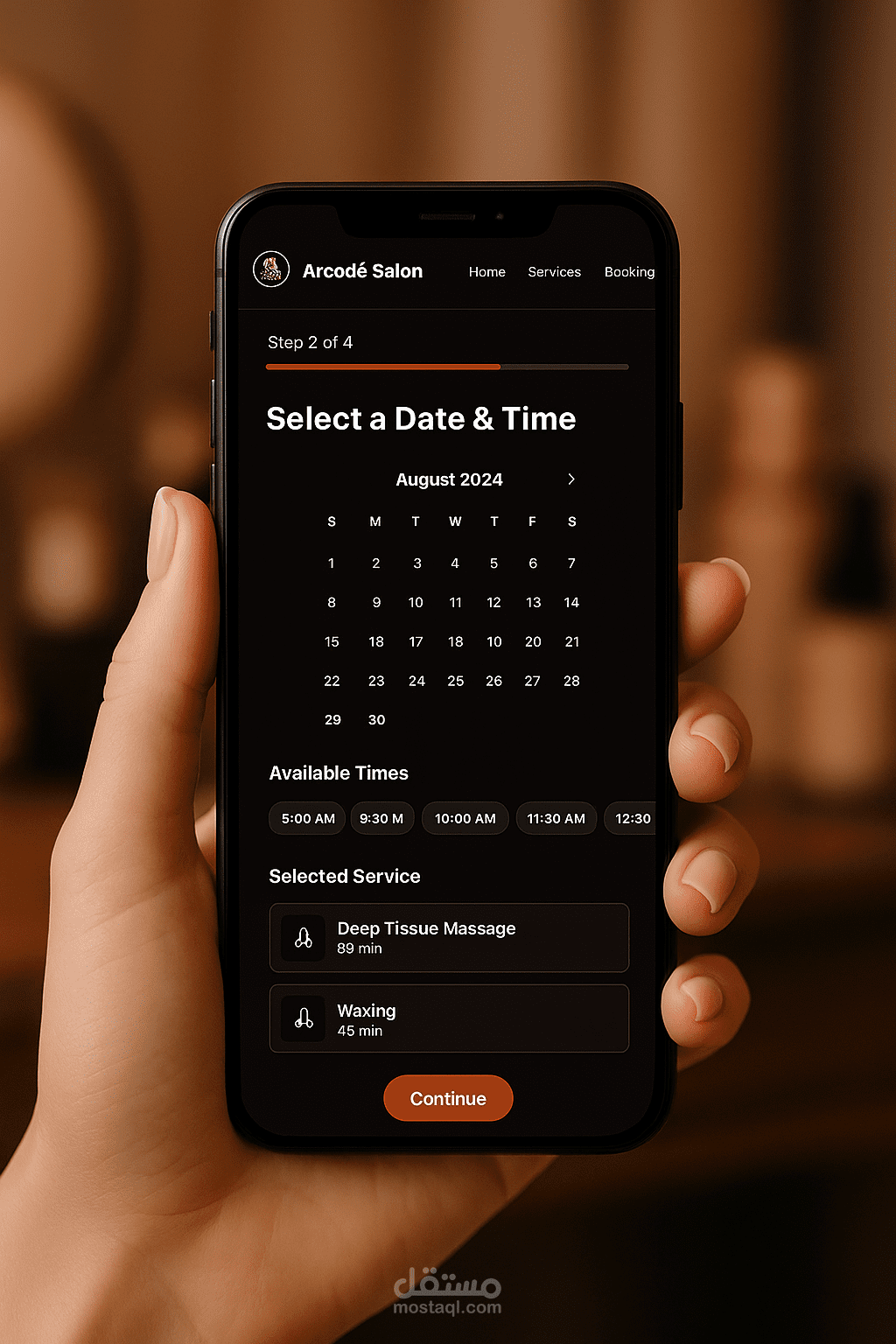 - تبسيط خطوات اختيار الخدمة حتى تأكيد الموعد