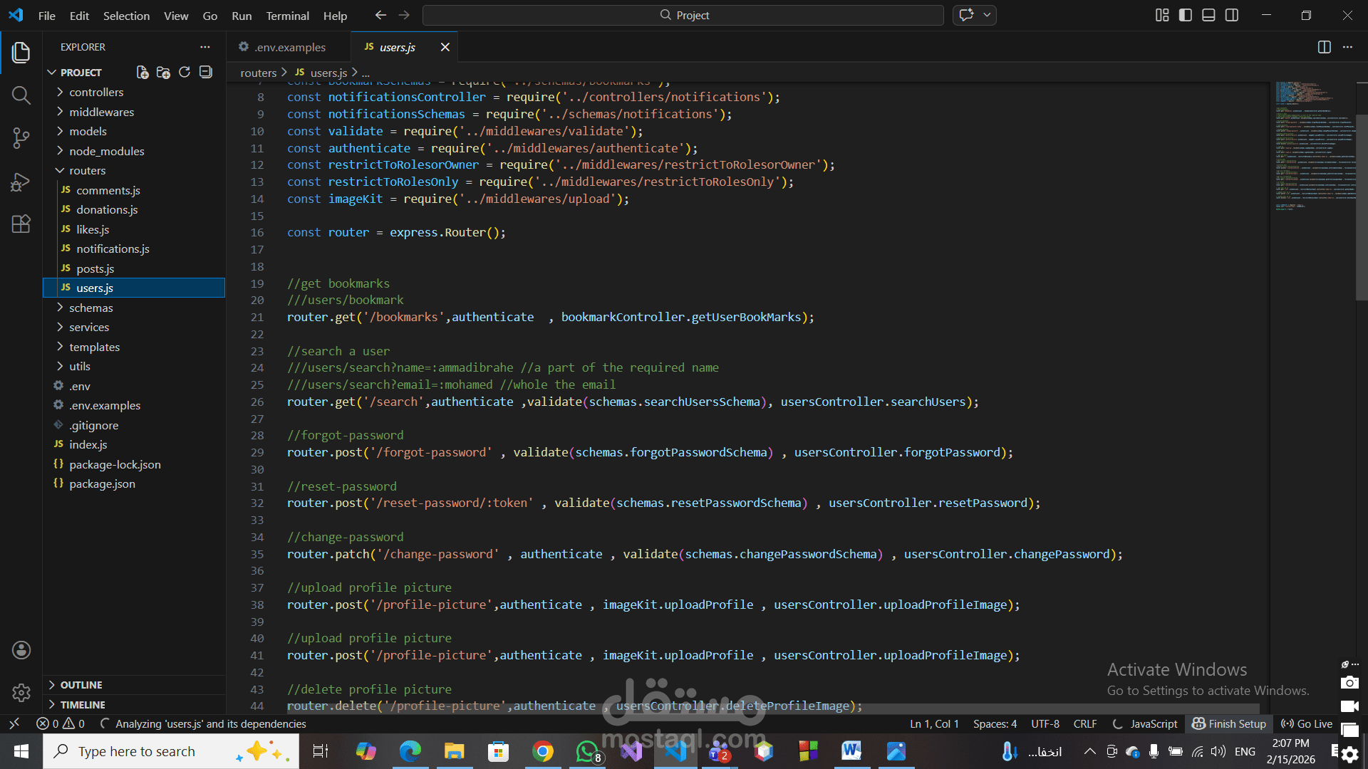 نظام حماية وتوثيق: تأمين المسارات باستخدام JWT وربط العمليات بصلاحيات المستخدمين.