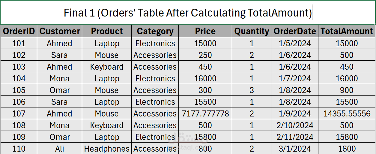Handled missing values, calculated total order amounts, and performed aggregations per customer, product, and category.