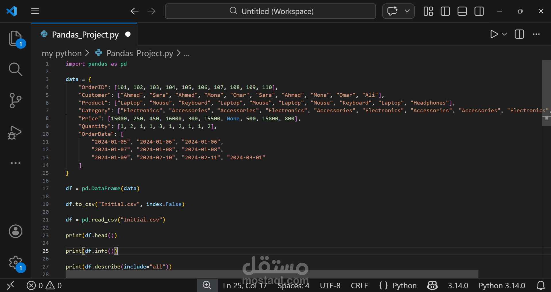 Performed comprehensive data cleaning, transformation, and analysis on a sales dataset using Python and Pandas.