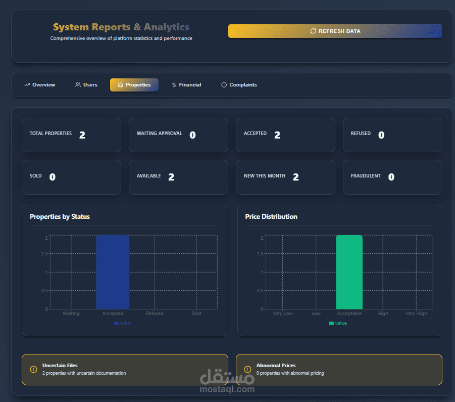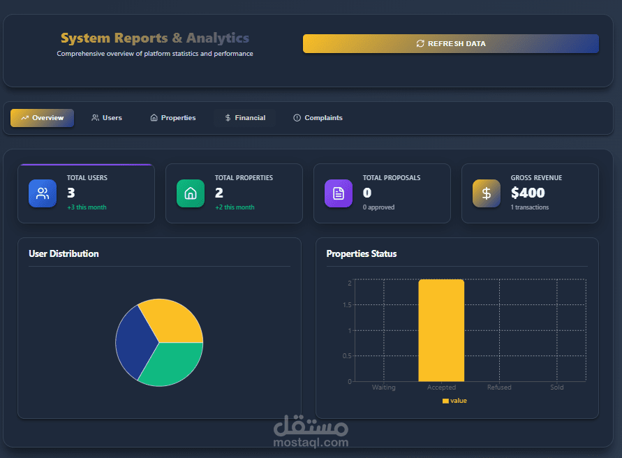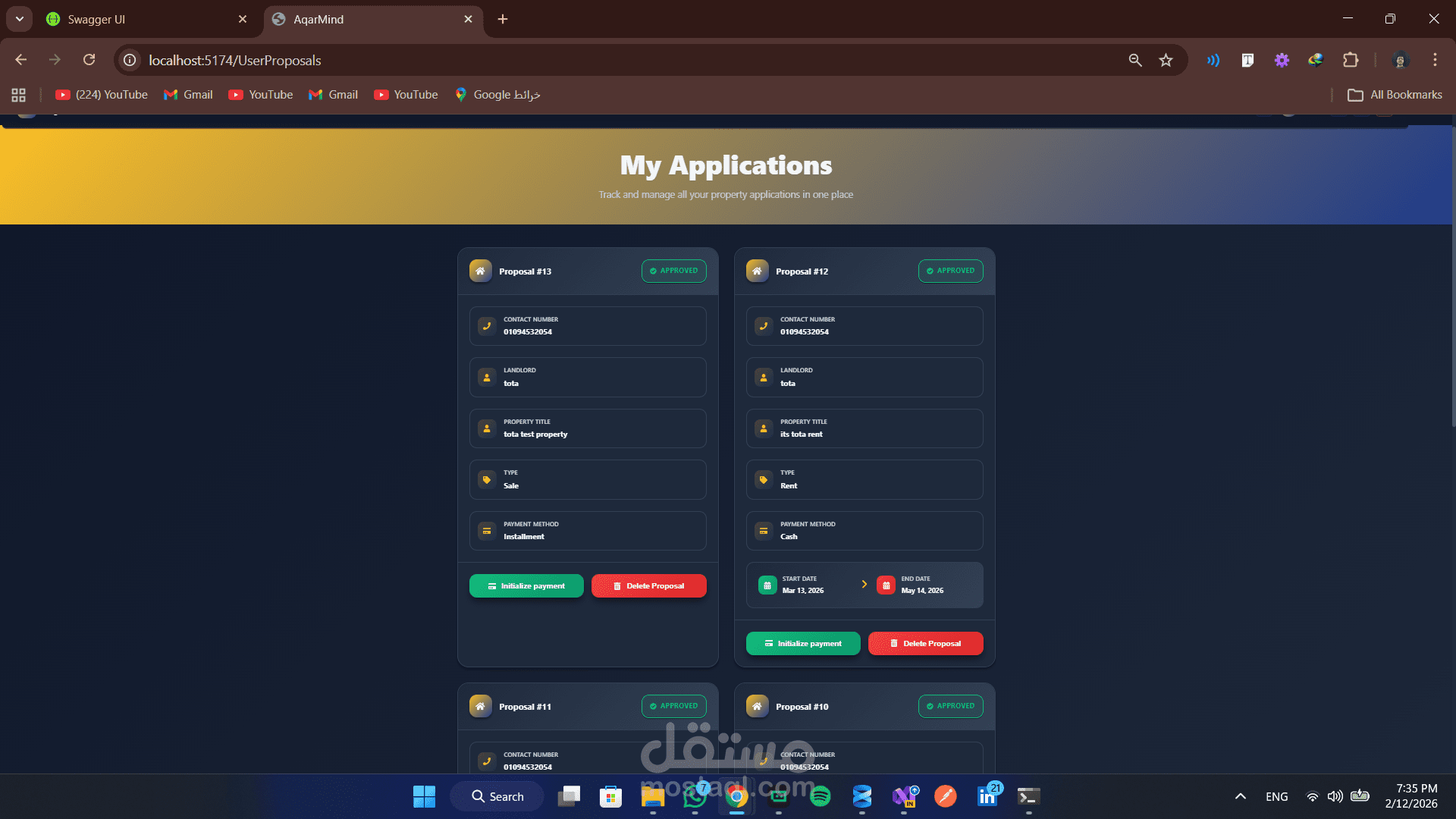 A fully integrated real estate web application built using **ASP.NET Core Web API** for the backend and **React.js** for the frontend, designed to serve **administrators, landlords, and tenants** with separate dashboards.