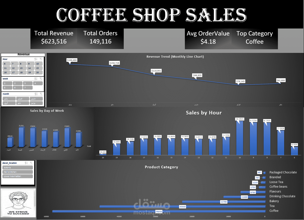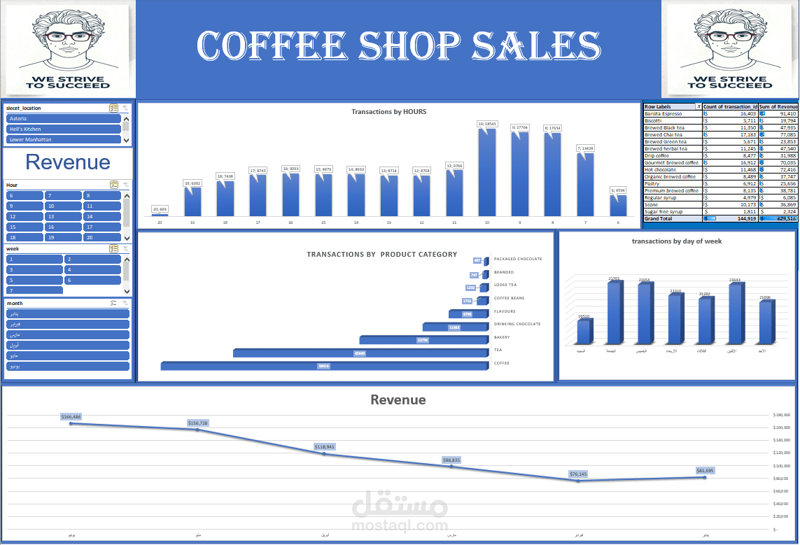 سأعمل على تحليل البيانات، تنظيفها، تنظيمها، ثم عرضها بطريقة احترافية تمنحك رؤية شاملة لحجم الإيرادات، اتجاهات الشراء، وأداء كل فئة ومنتج. هدفي هو أن أقدم لك مخرجات تساعدك على زيادة المبيعات، تحسين القرارات، وتطوير استراتيجيات أكثر ذكاءً.