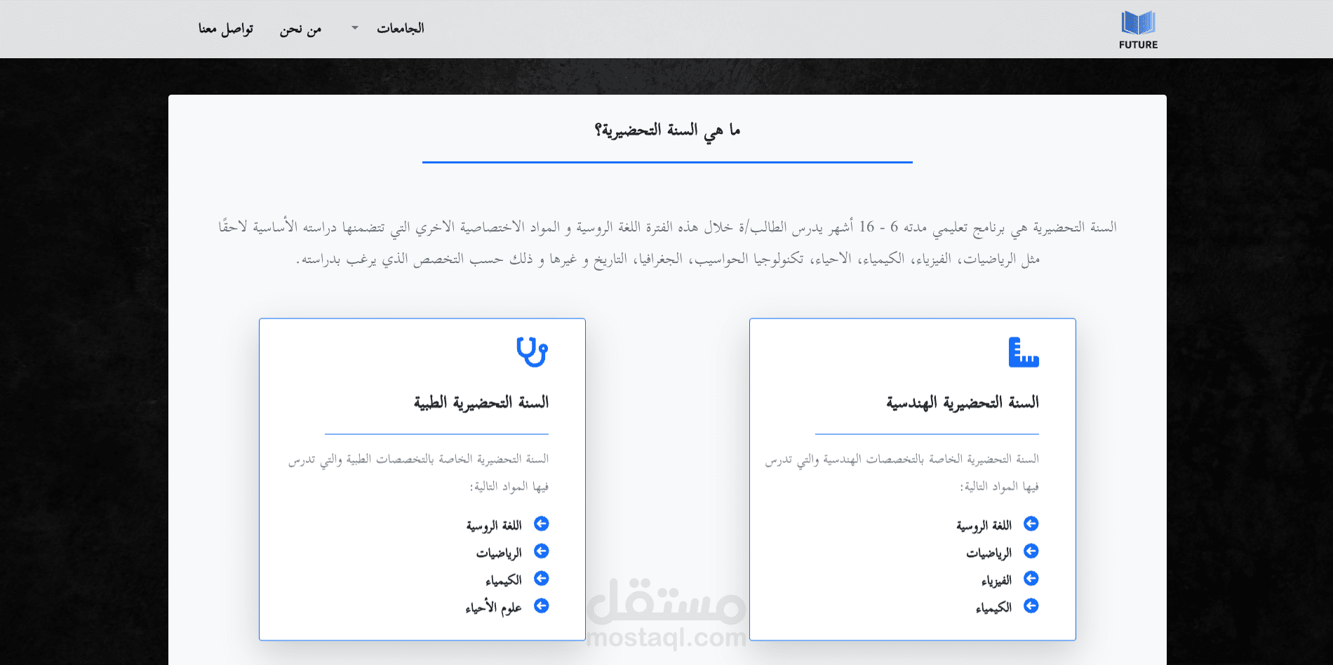 صفحة التحضيري (prepatory.html) - معلومات عن السنة التحضيرية/التمهيدية