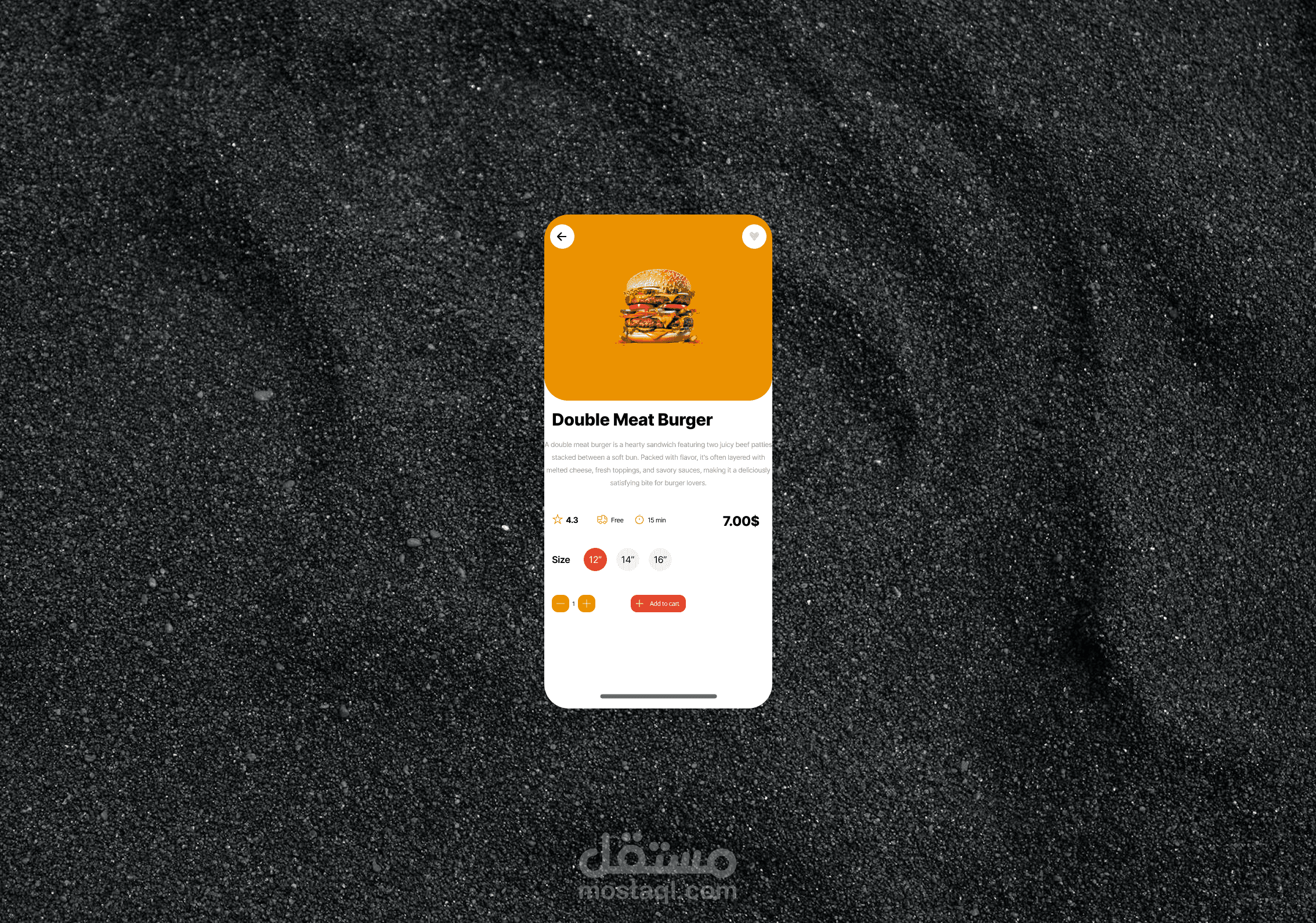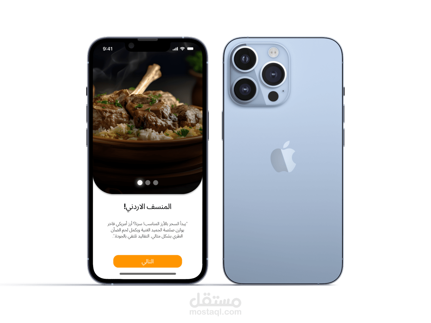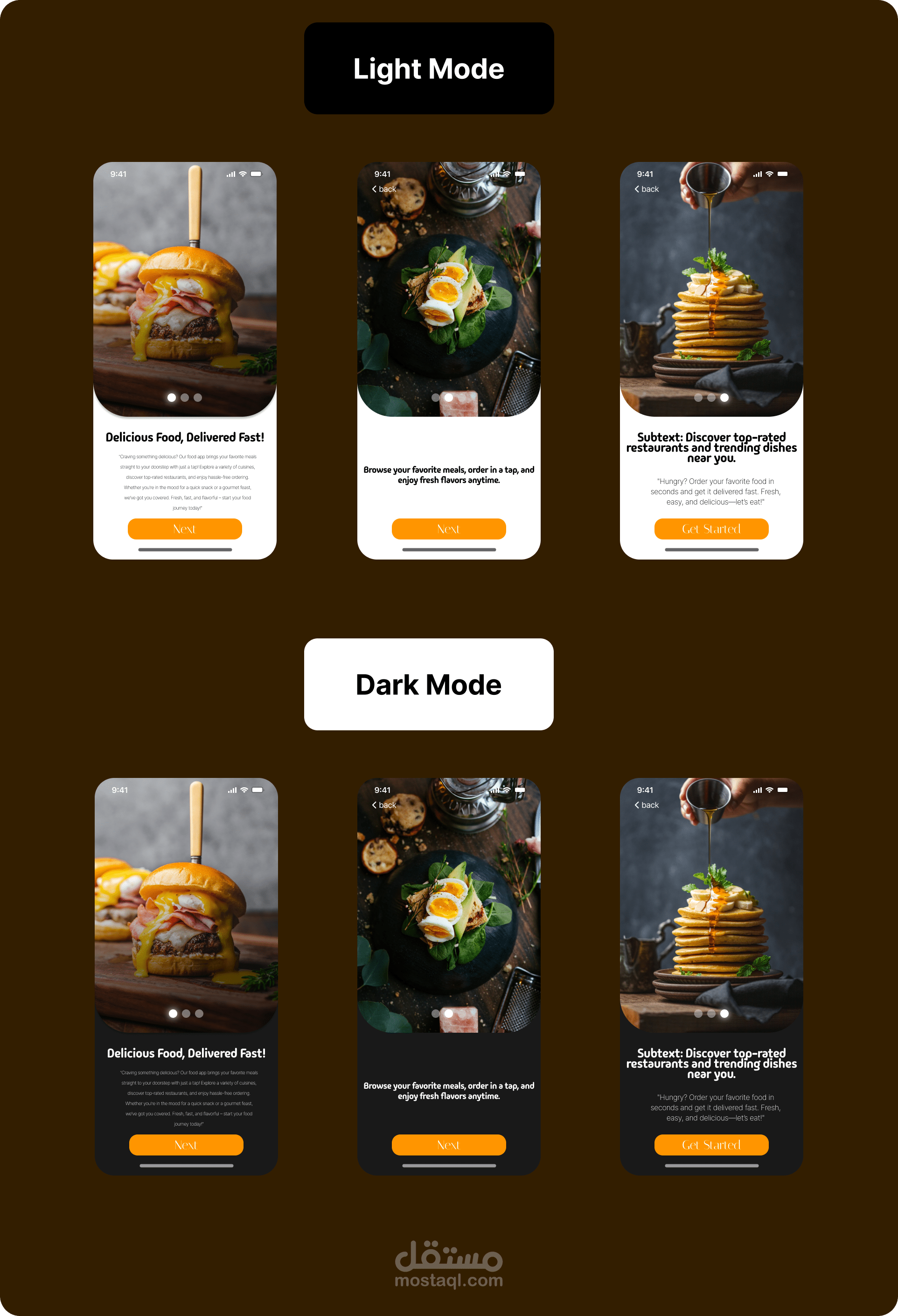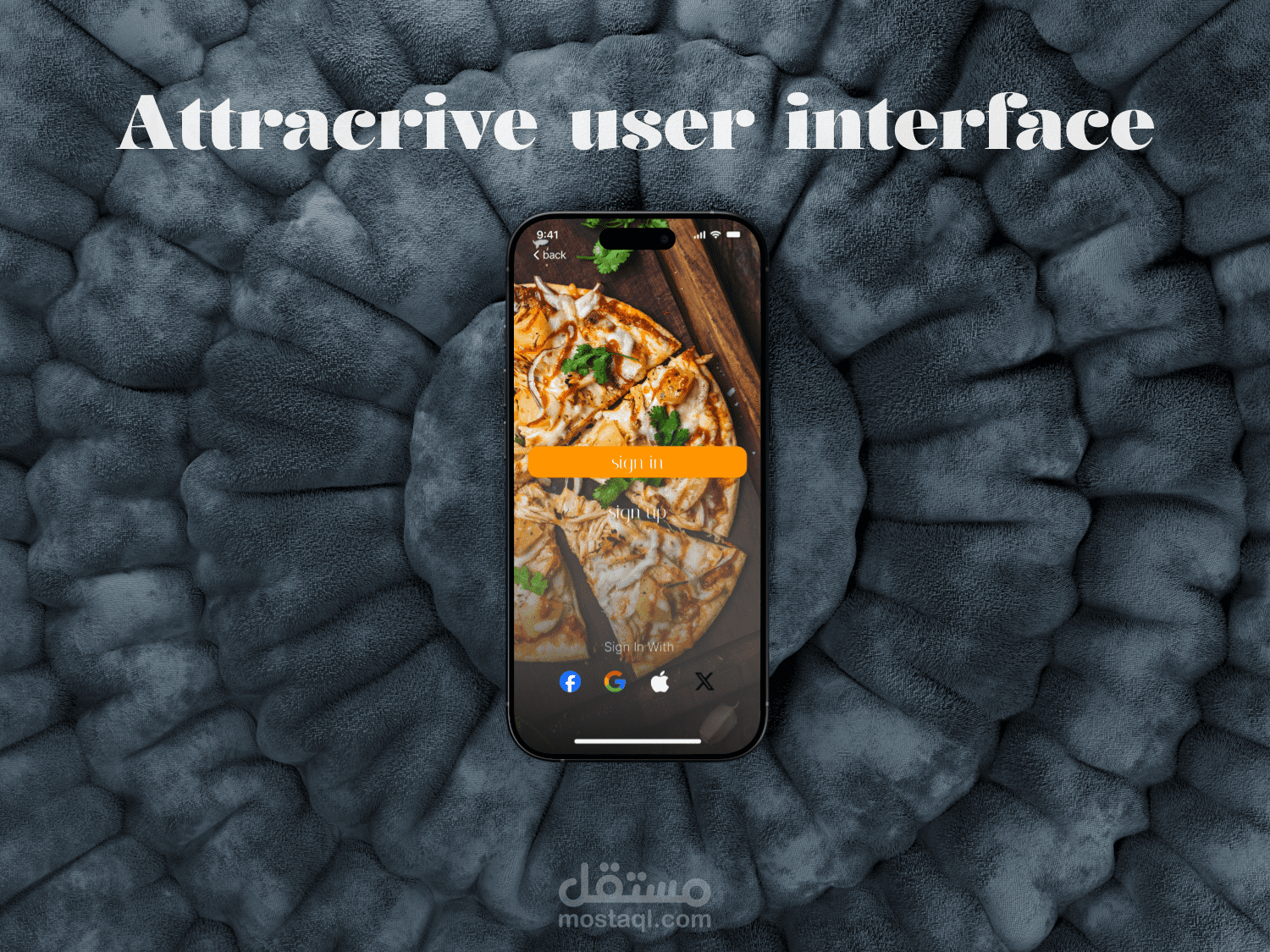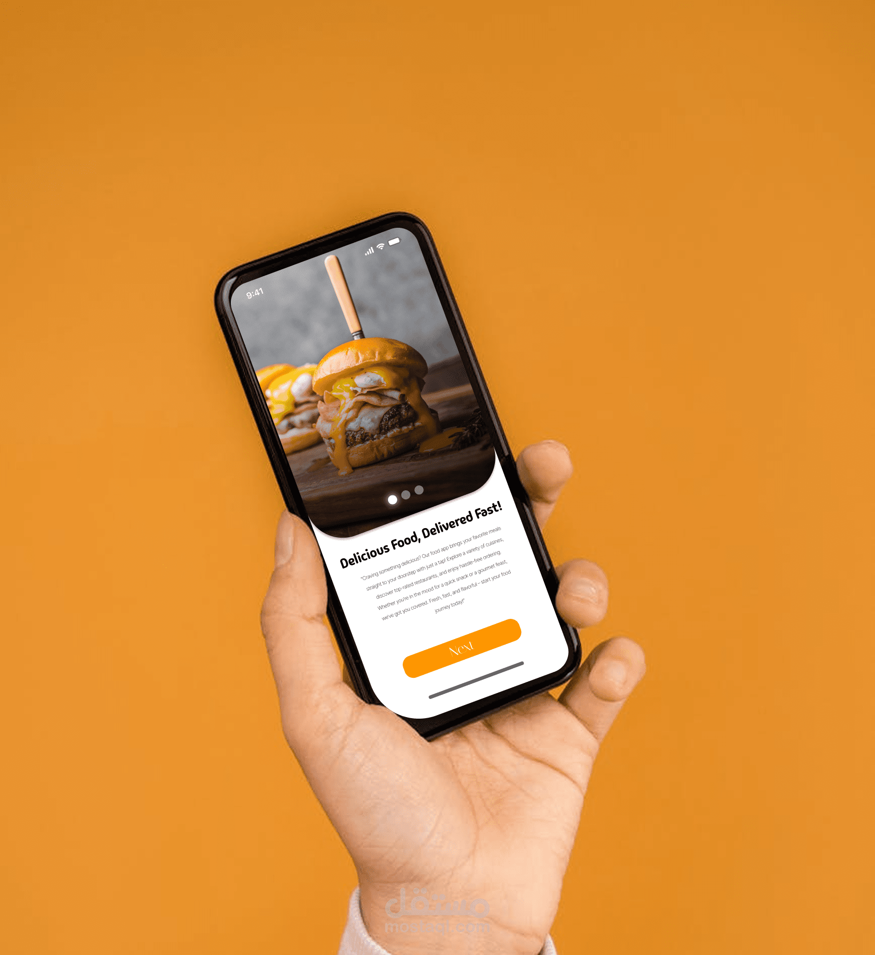 العميل هو صاحب مشروع مطعم, اراد جذب العملاء من خلال صور طعام مغرية داخل تطبيق, قمت بتصميم الواجهات بحيث تكون جذابة بصريا مع استعمال الوان مريحة و تفتح الشهية, و استعمال خطوط ذات شعبية في مجال الاكل و المطاعم باللغتين العربية و الانجليزية, بعد انتهائي من التصميم على فيجما وضعتها داخل نماذج لهواتف لتصبح اكثر جاذبية