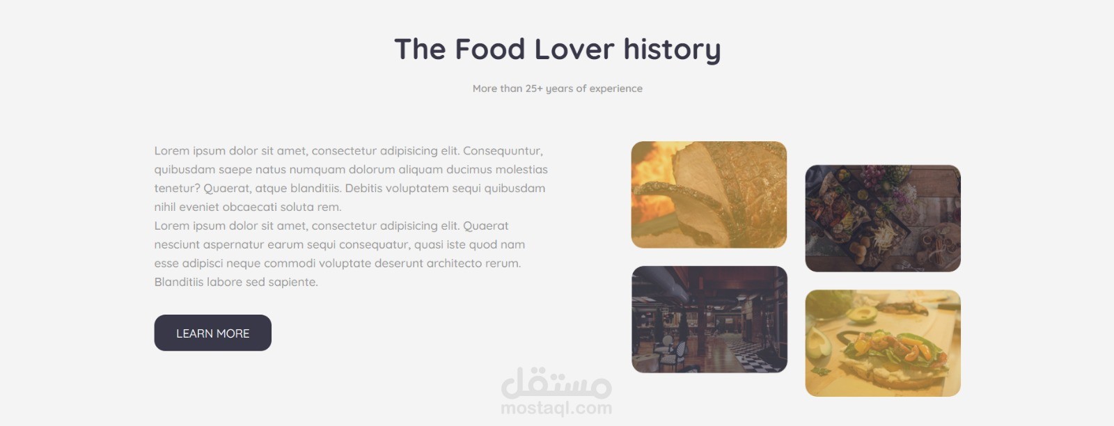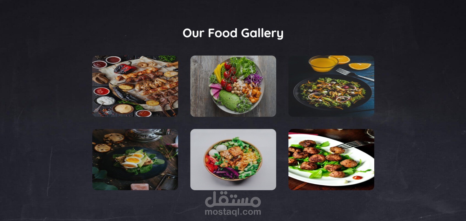 معرض صور (Gallery) لعرض أطباق المطعم بصريًا.