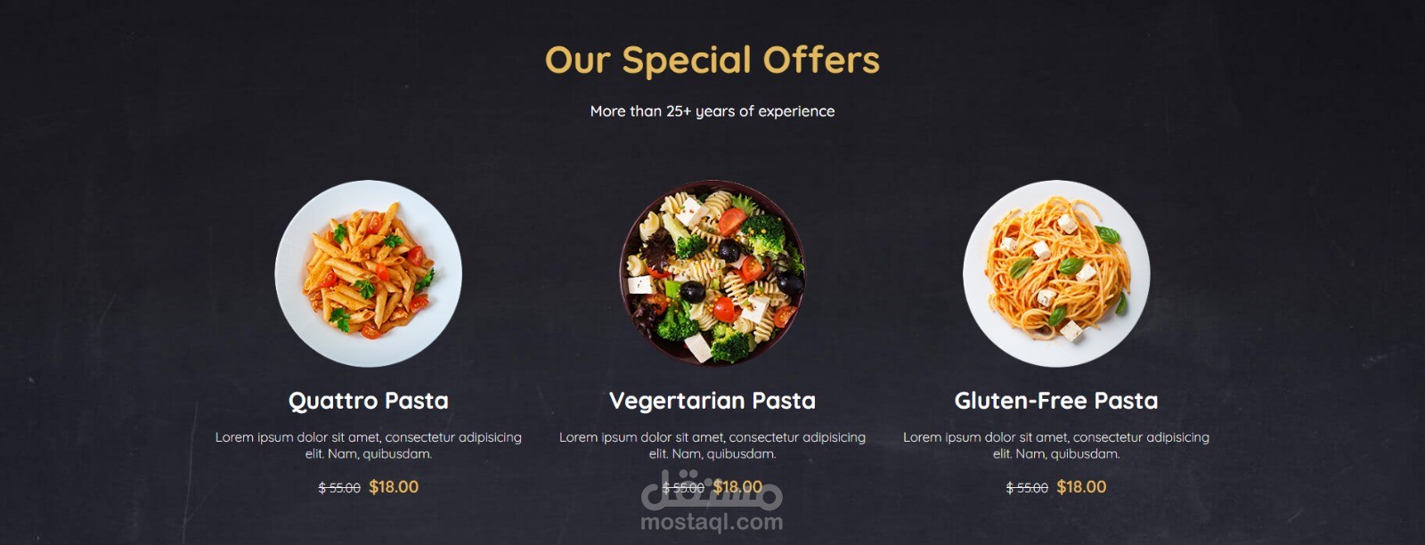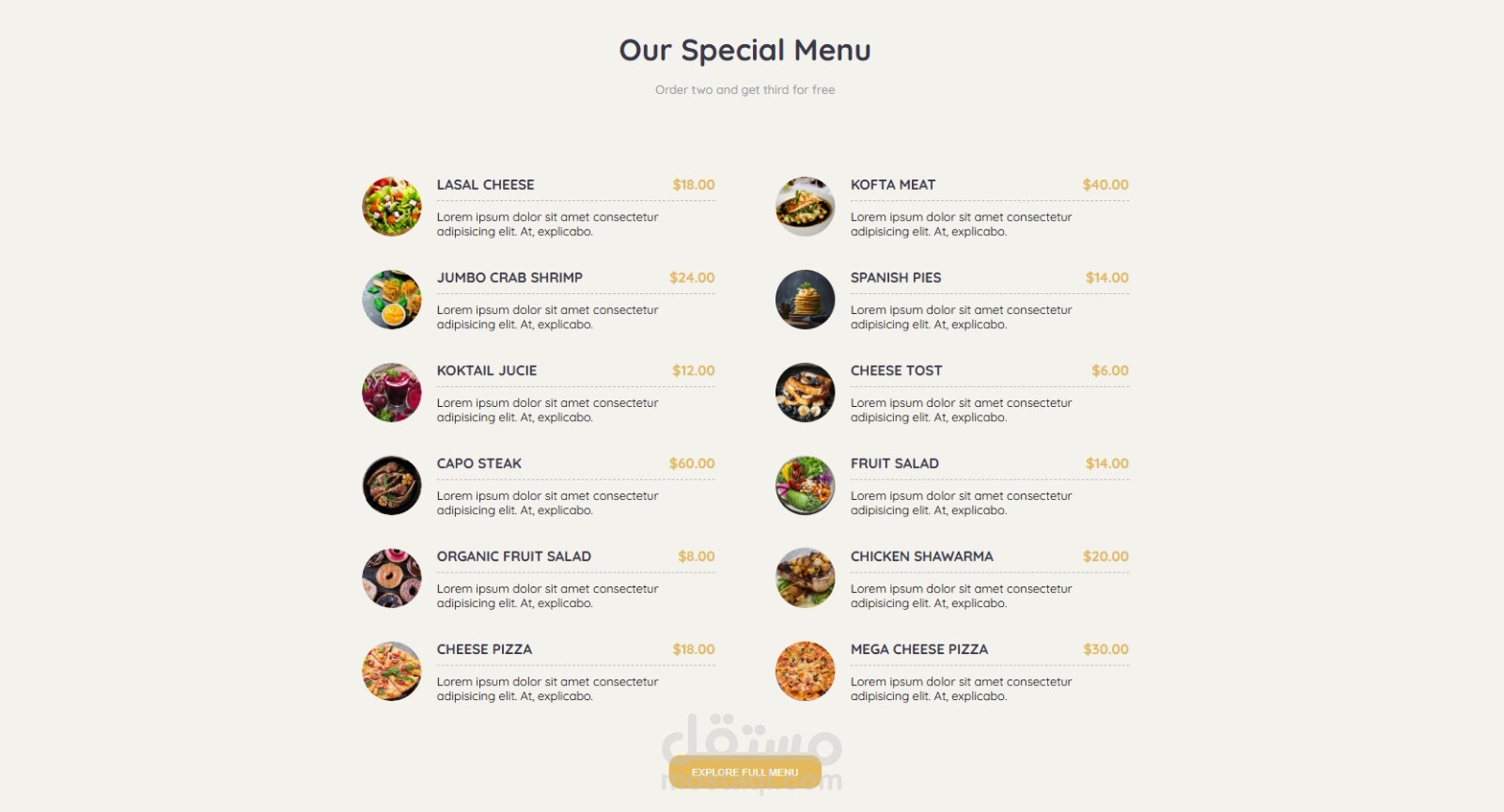 قسم العروض الخاصة لعرض صفقات اليوم أو الأطباق المميزة بأسعار جذابة.