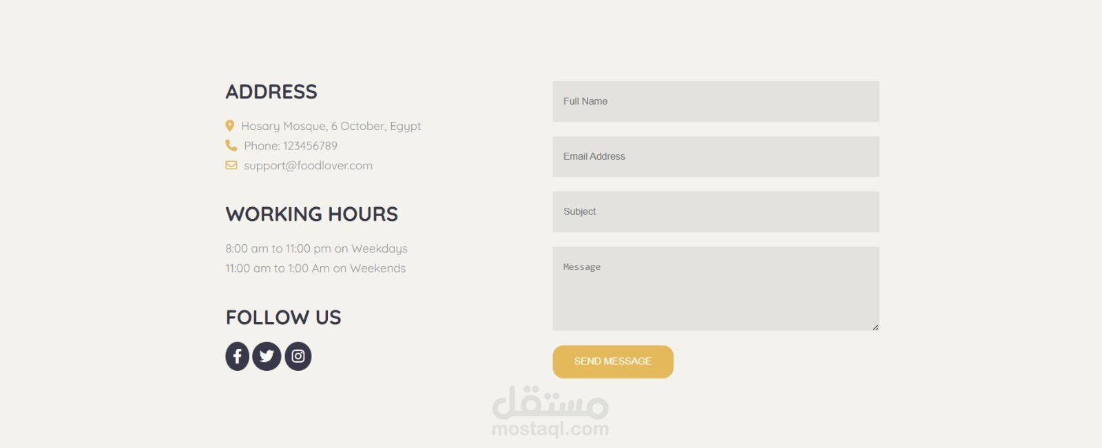 أوقات العمل لكل وجبة (فطار – غداء – عشاء – حلويات).