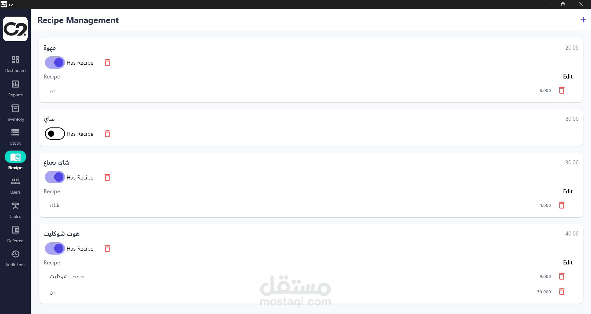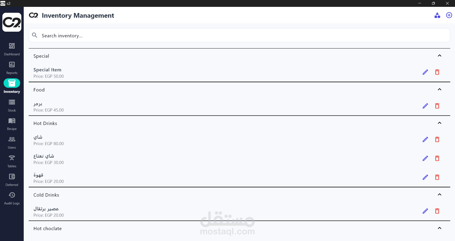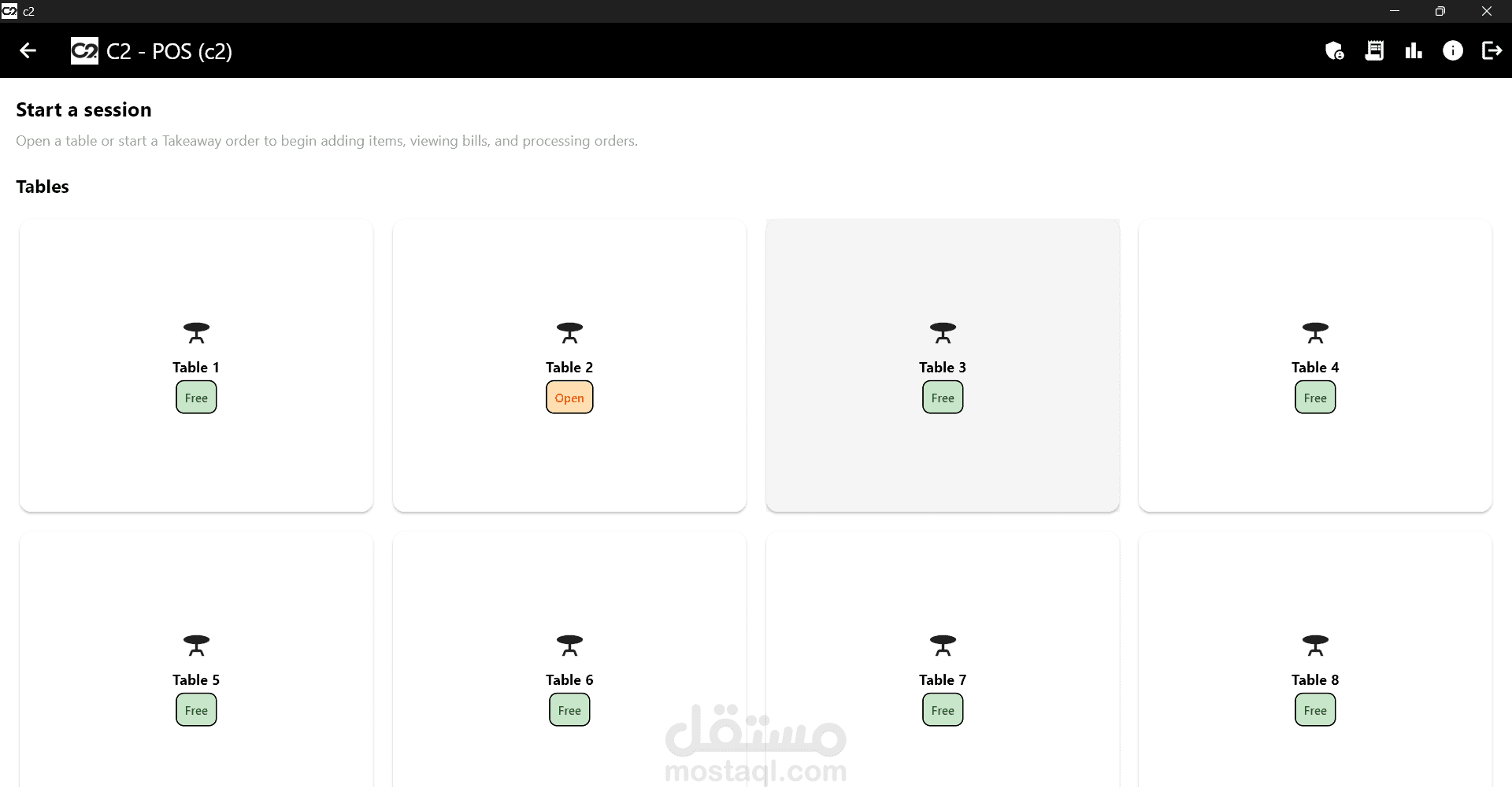 قمت بتطوير نظام نقاط بيع (POS) متكامل لكافيه C2 باستخدام Flutter، مصمم ليعمل بكفاءة عالية مع قاعدة بيانات محلية (Local Database) بدون الحاجة إلى اتصال دائم بالإنترنت.