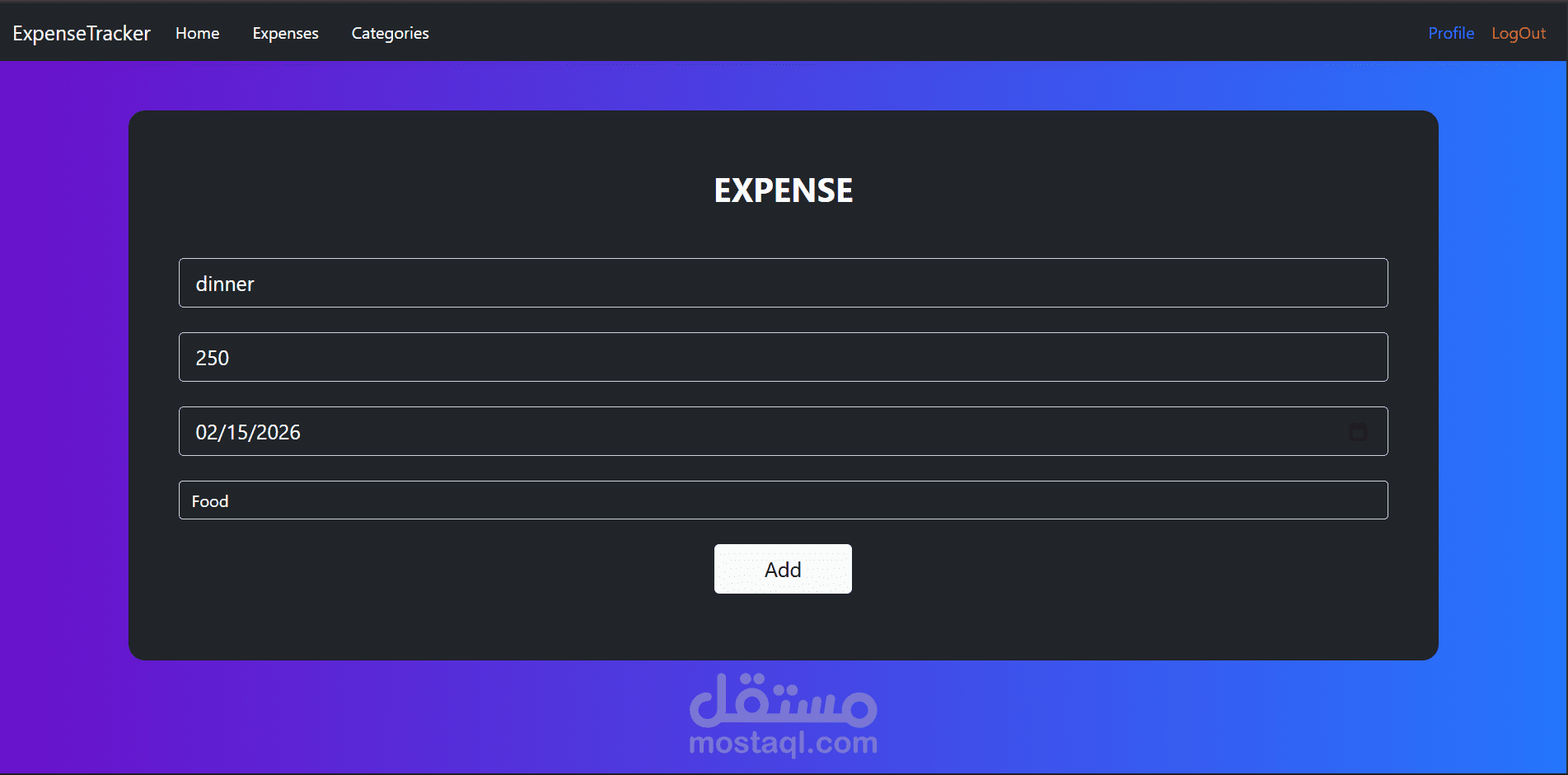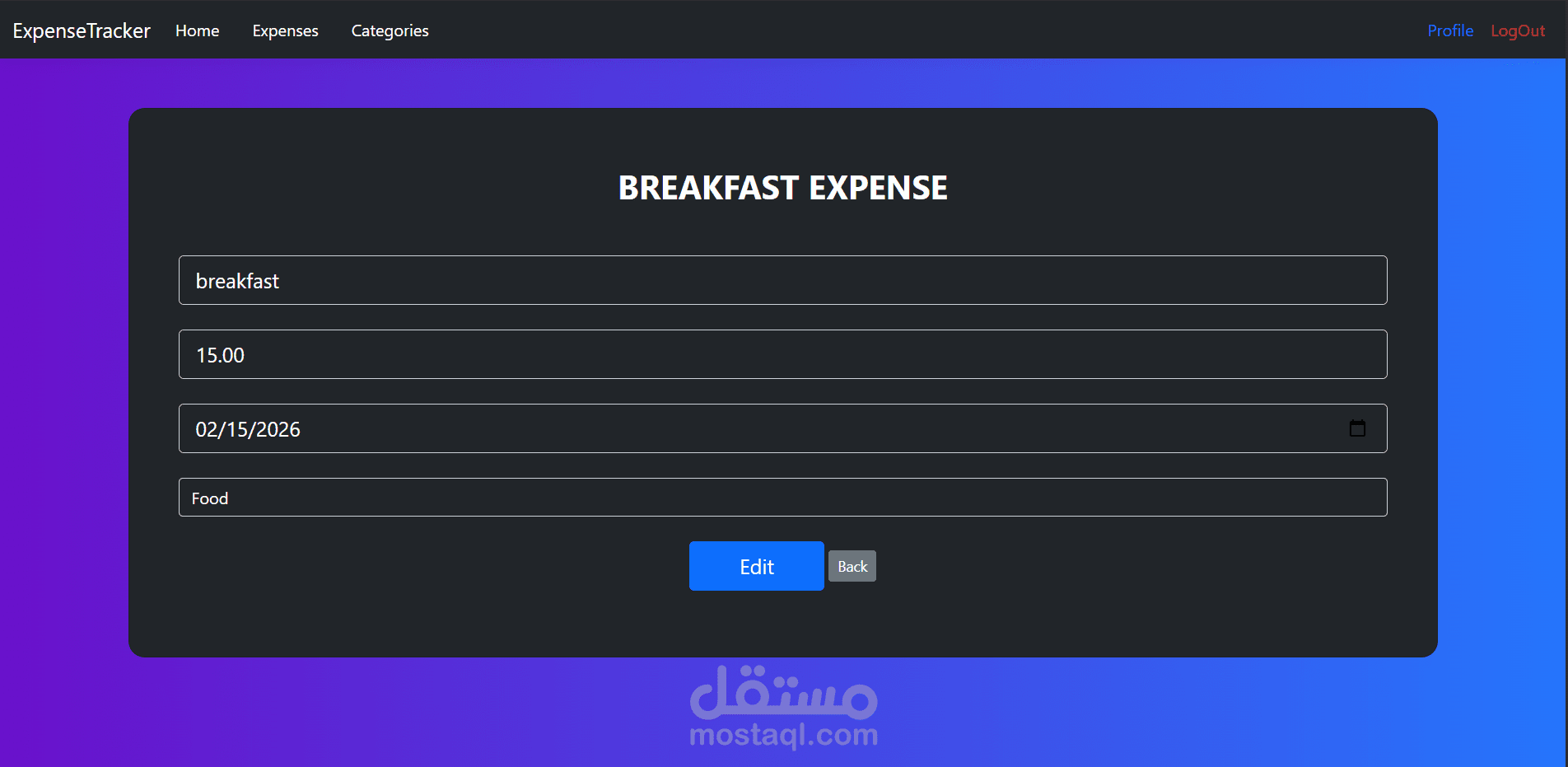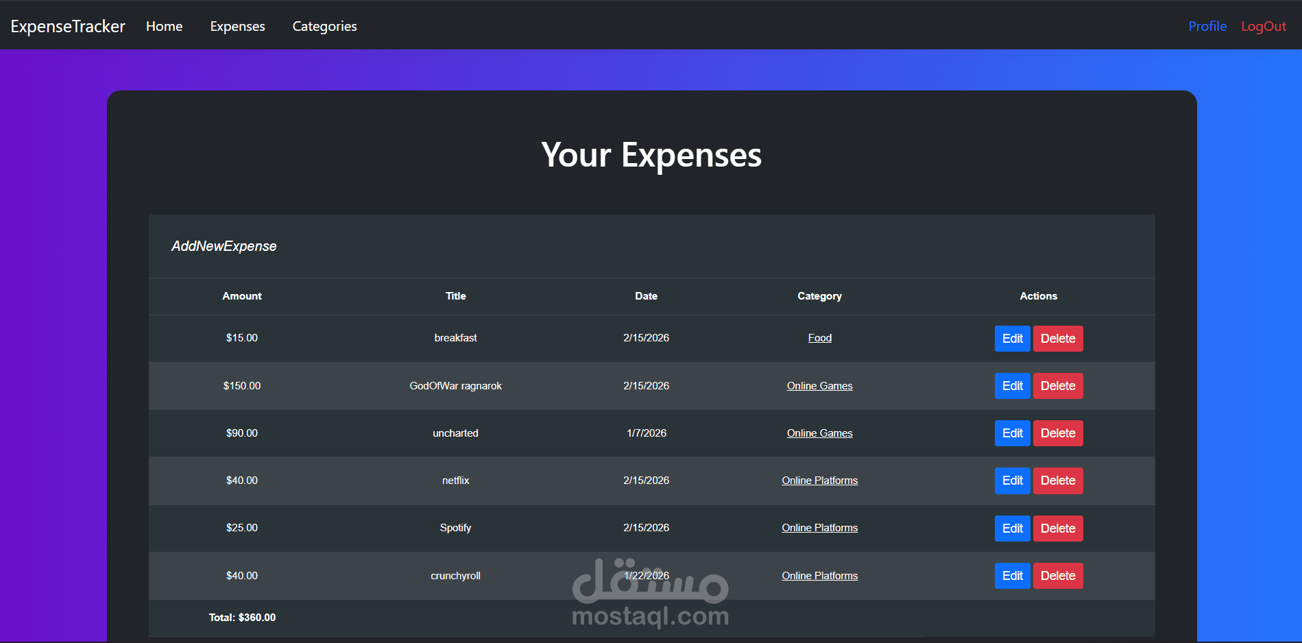 - Full CRUD operations for expenses