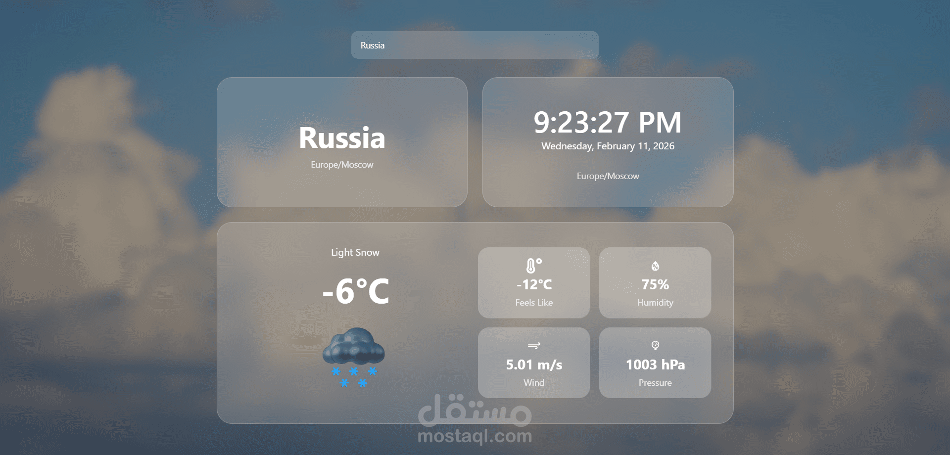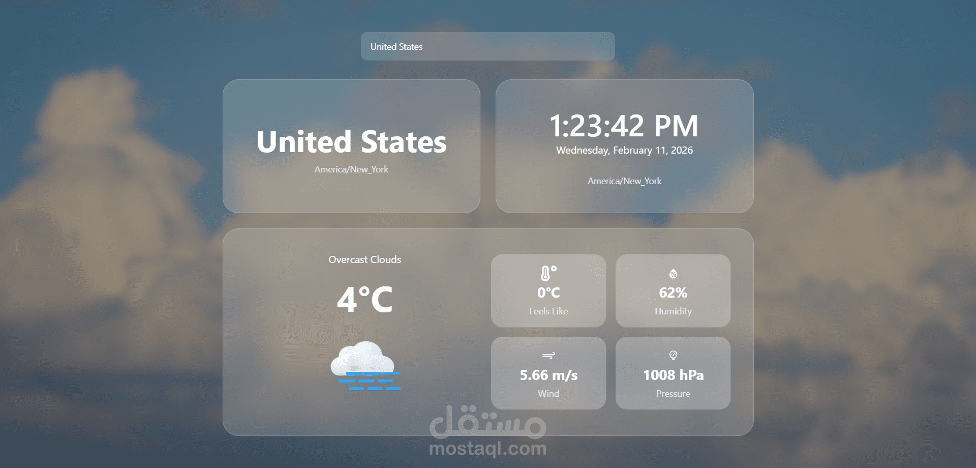 قمت بتطوير تطبيق ويب تفاعلي يجمع بين الساعة العالمية (World Clock) و حالة الطقس (Weather App) في منصة واحدة، مما يتيح للمستخدمين معرفة الوقت الحالي وحالة الطقس لأي مدينة حول العالم بشكل فوري ودقيق.