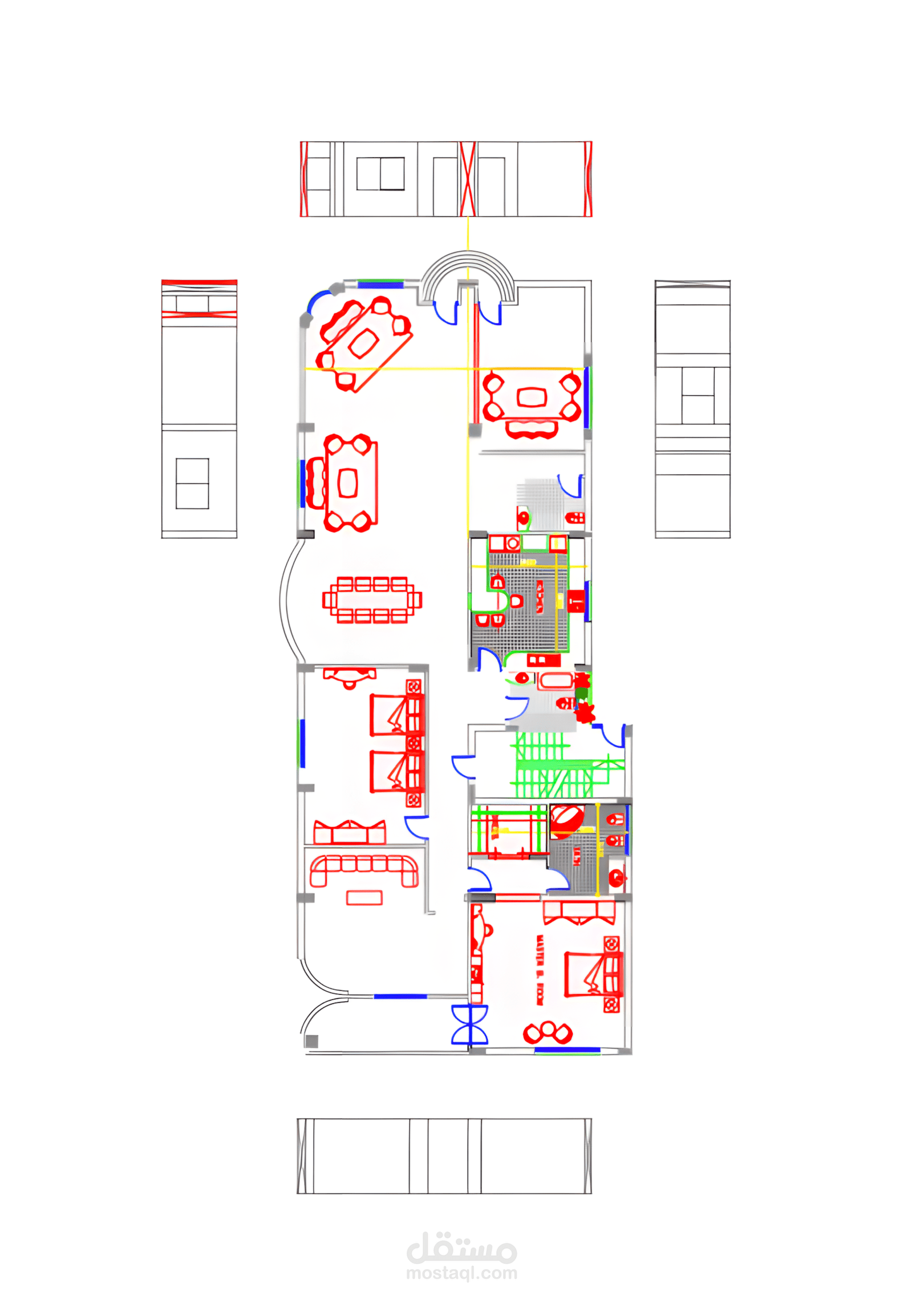 يرتكز التصميم على تحقيق التوازن بين الجمال والوظيفة من خلال توزيع الفراغات بشكل مدروس يضمن سهولة الحركة واستغلال المساحة بأفضل شكل ممكن، مع توظيف الإضاءة الطبيعية والصناعية لإبراز التفاصيل المعمارية والخامات.