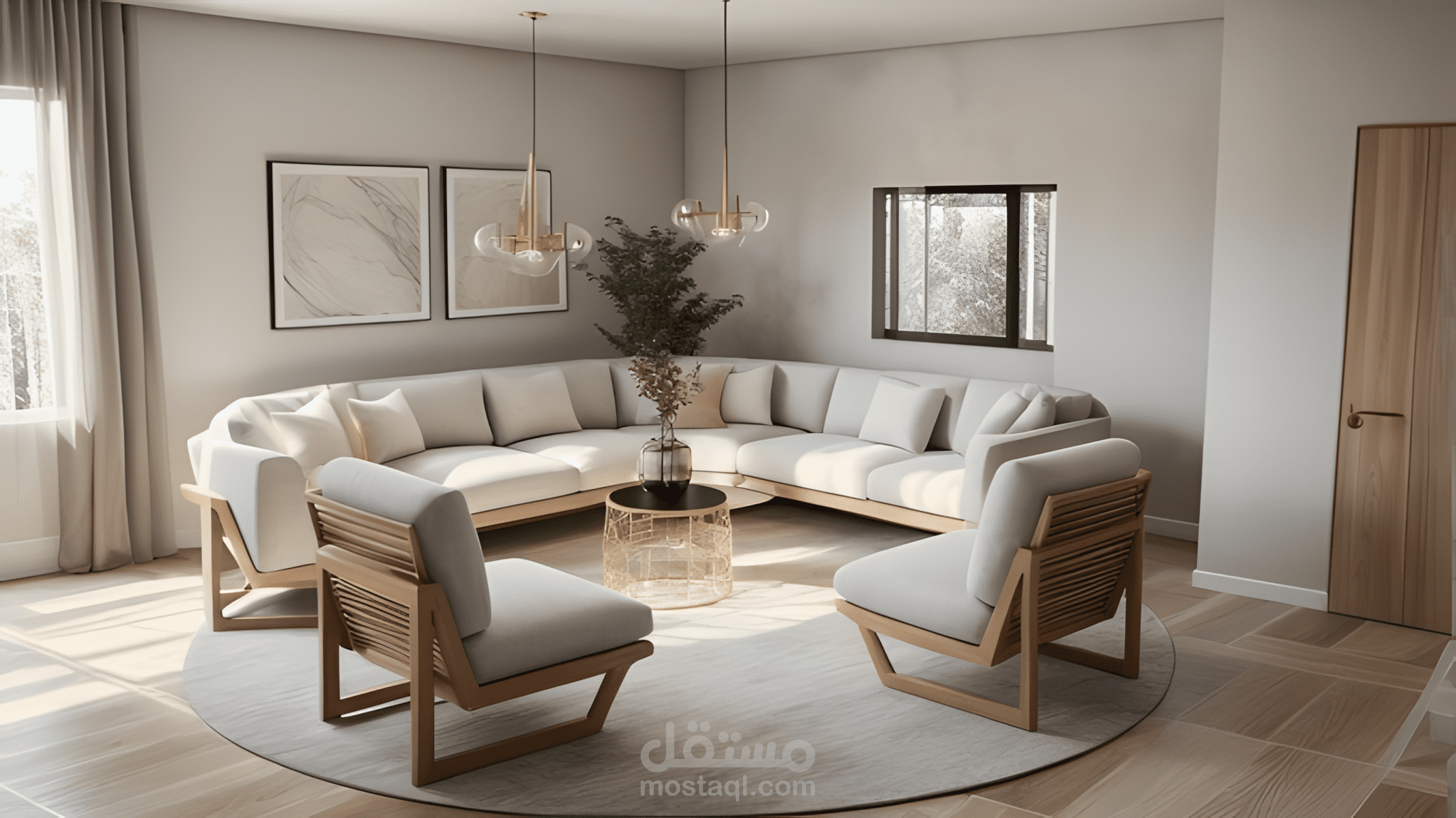 التصميم يعكس مفهوم المعيشة العصرية الهادئة داخل مساحة عملية وأنيقة.