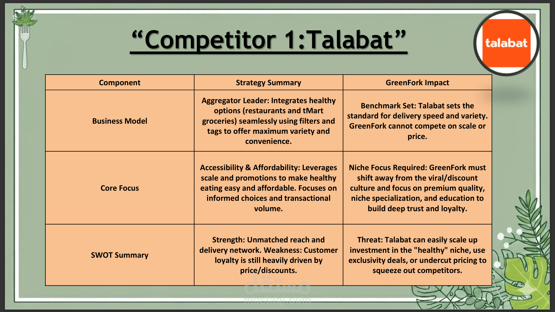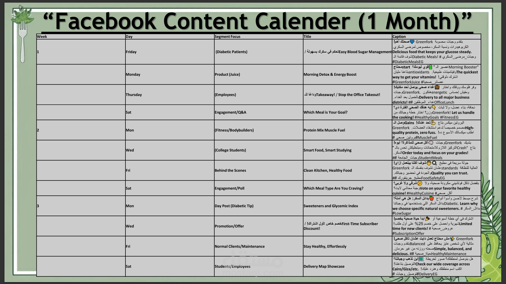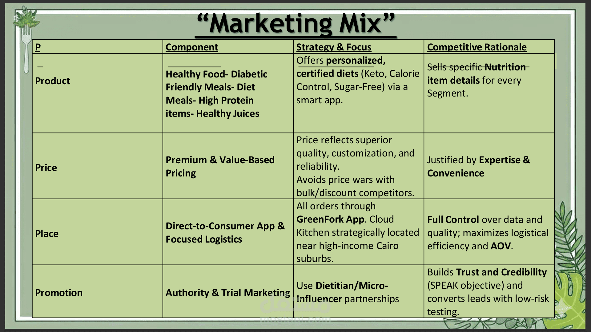 خطة مشروع كاملة لمشروع يدعى "GreenFork" لبيع منتجات و اكل صحي في مصر 100% طبيعي