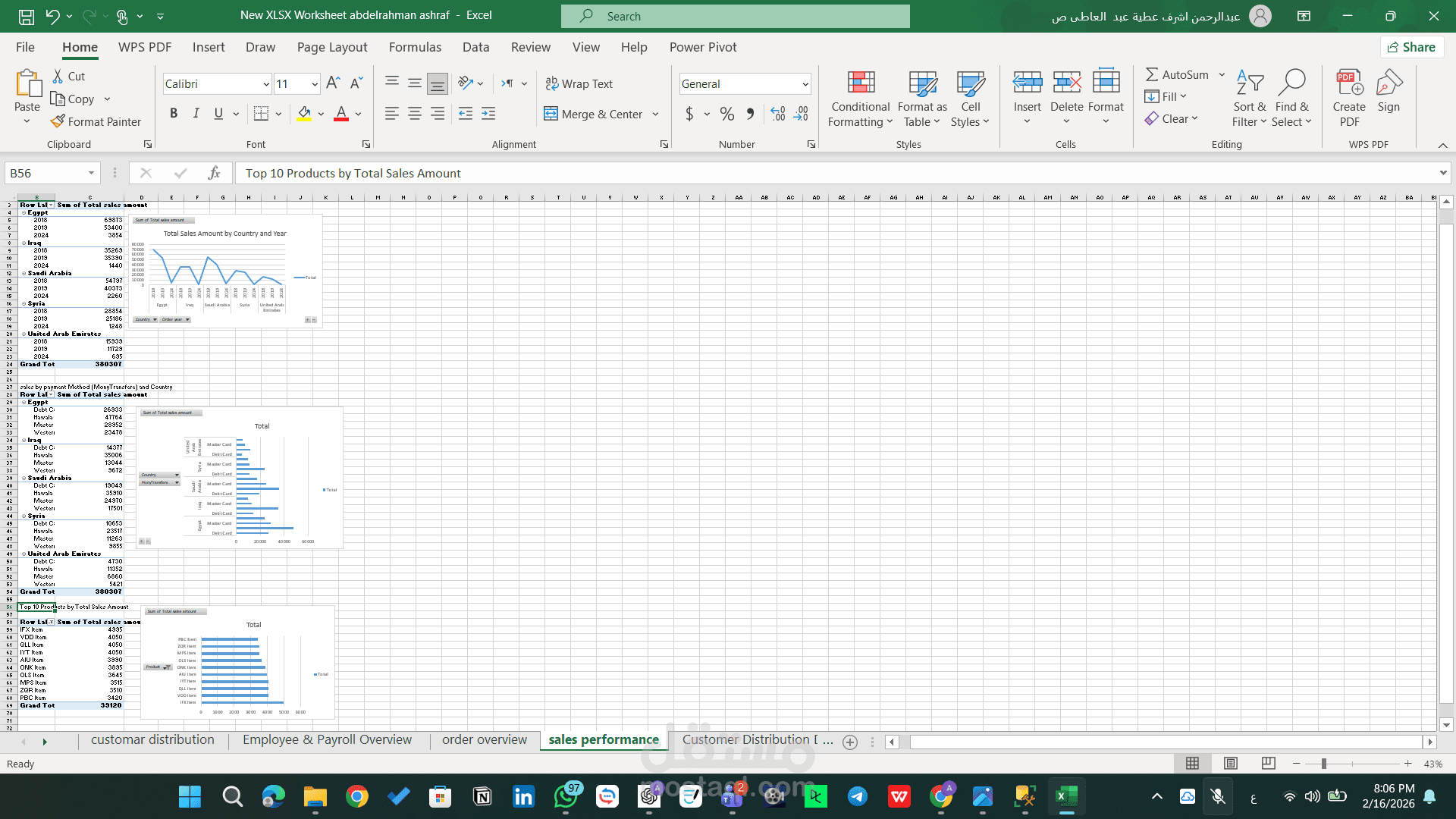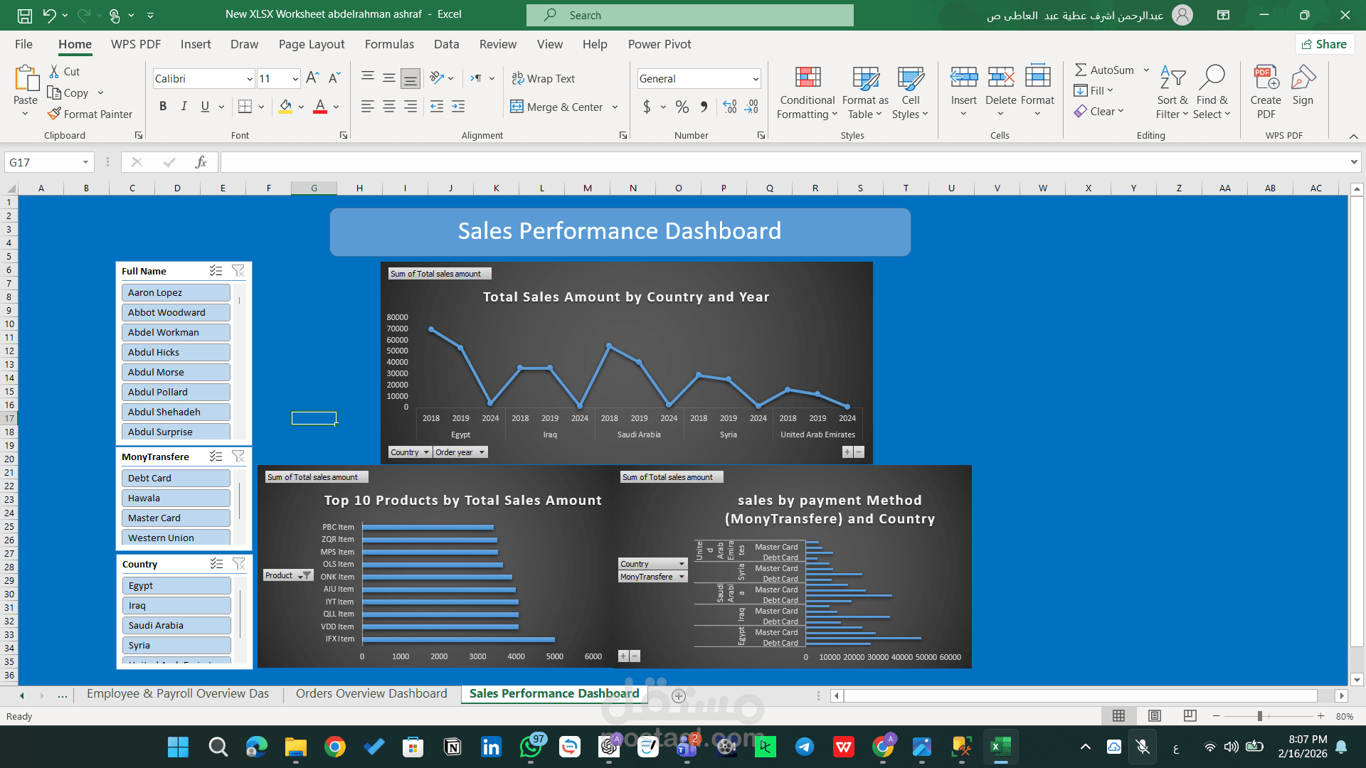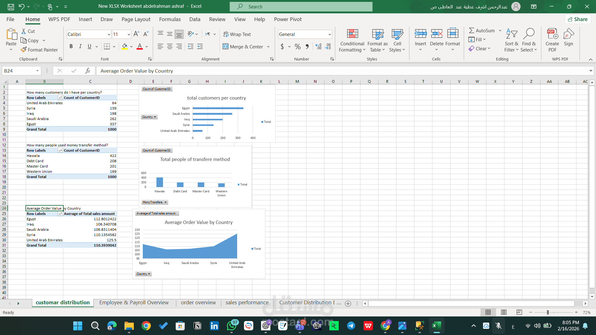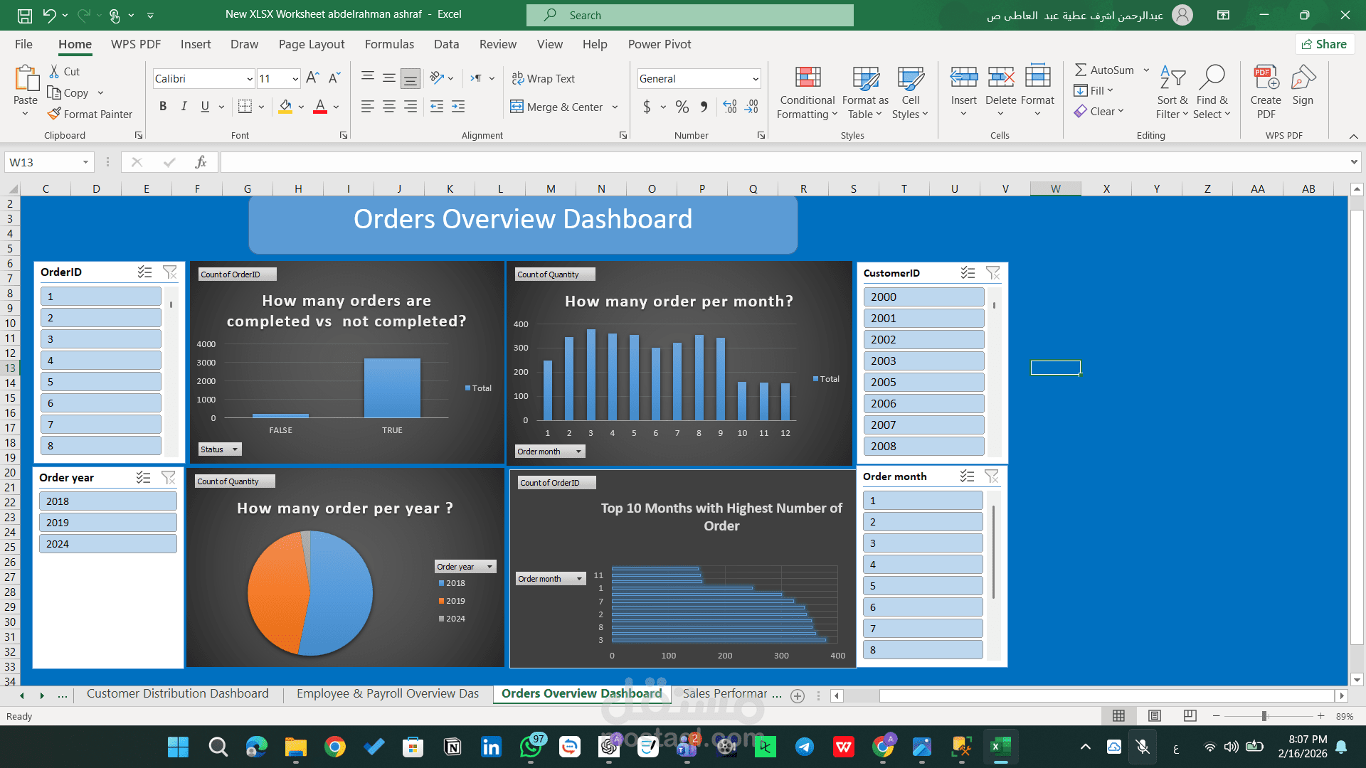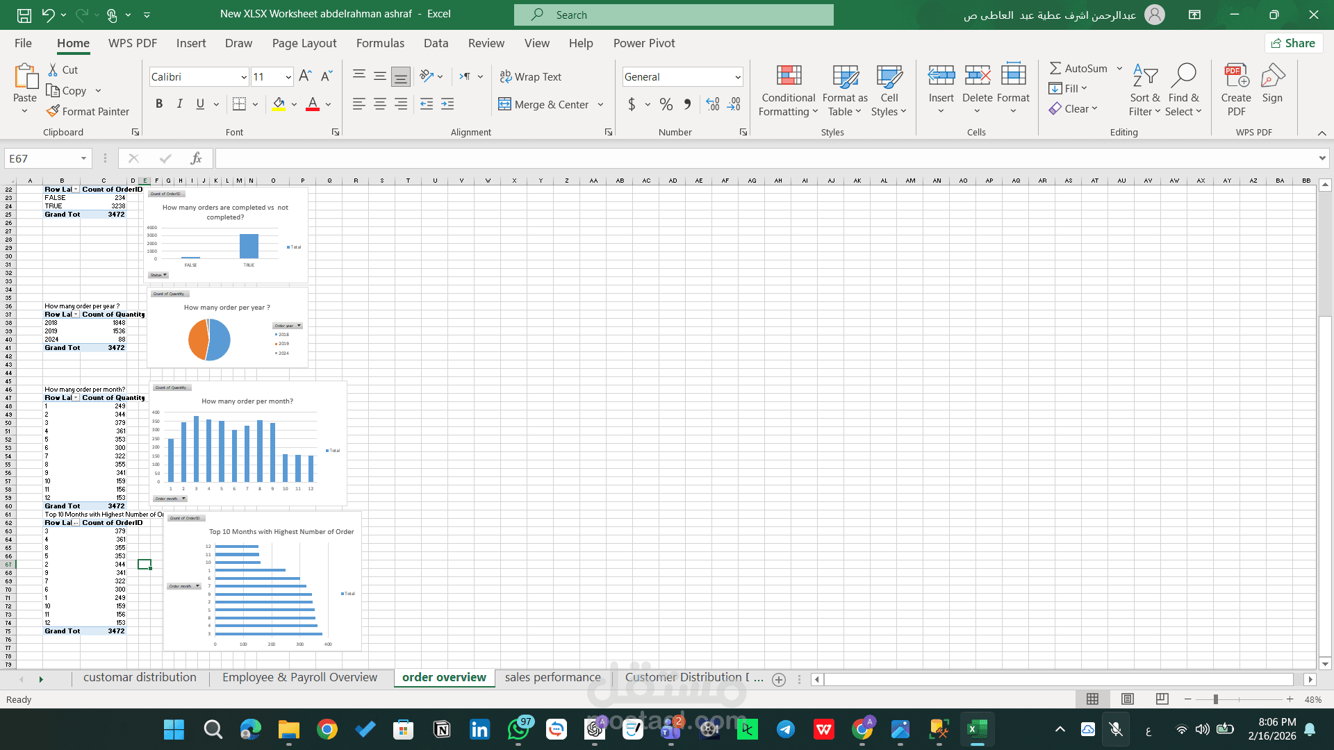 تم تنفيذ المشروع باستخدام أدوات التحليل المتقدمة في Excel، مع التركيز على تحويل البيانات الخام إلى مؤشرات أداء واضحة تدعم اتخاذ القرار.