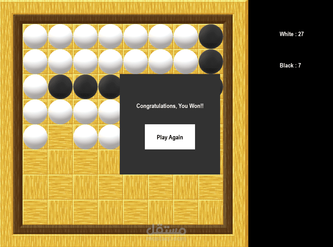 تطوير نسخة رقمية متكاملة من لعبة الألواح الشهيرة Othello (المعروفة أيضاً باسم Reversi)، تعتمد على البرمجة كائنية التوجه (OOP) وتوفر تجربة لعب ضد الحاسوب باستخدام خوارزميات الذكاء الاصطناعي. تتميز اللعبة بواجهة رسومية جذابة وتجربة مستخدم سلسة.