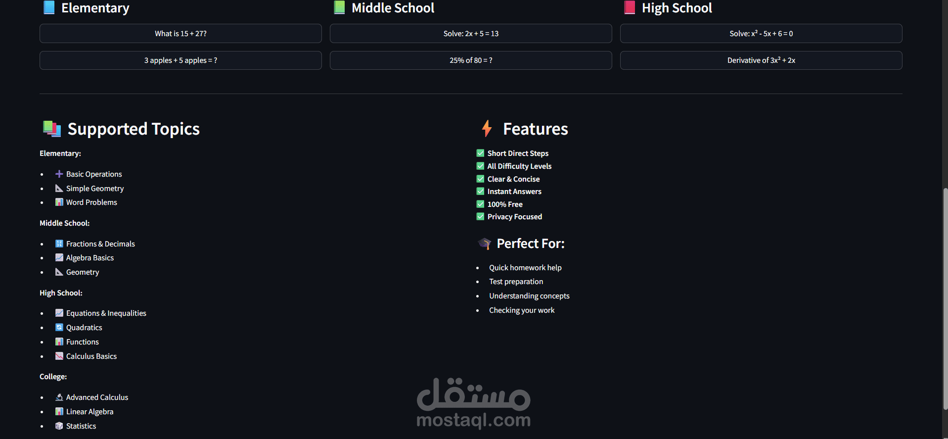 An intelligent web application that helps students solve math problems across all difficulty levels (Elementary to College) using Google's Gemini AI. The app provides step-by-step solutions with clear explanations, making it an ideal homework helper and learning companion.
