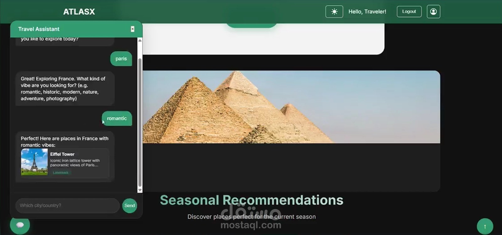 AI-Powered Travel Chatbot: Delivers tailored recommendations based on destination and user-selected vibes.