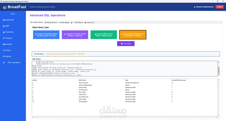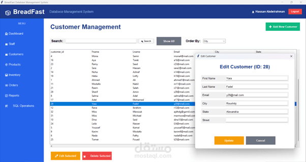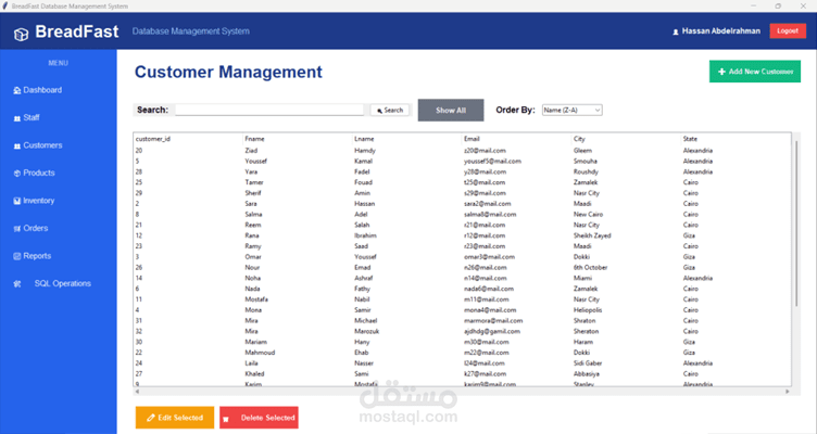 Using gui to make visual dashboards for order history sales and revenue. Admin role access and connected to database server
