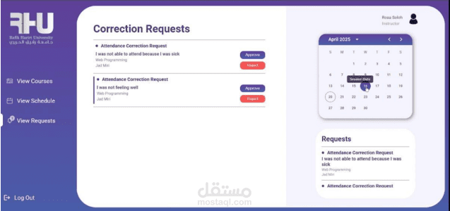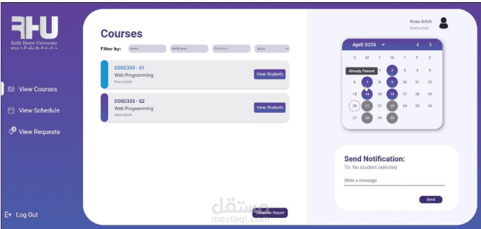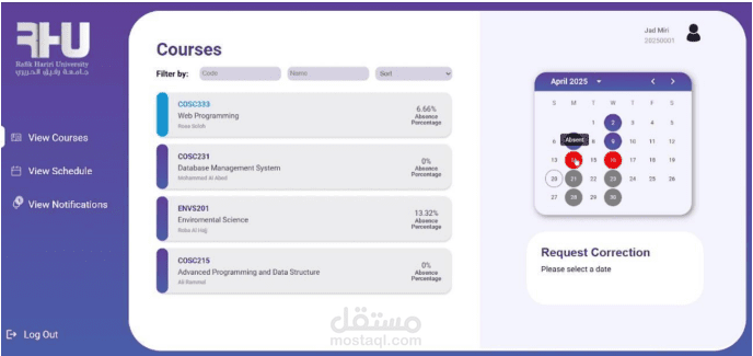 Frontend: Developed with React and Material UI to create interactive dashboards and attendance pages.