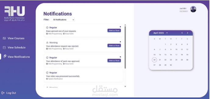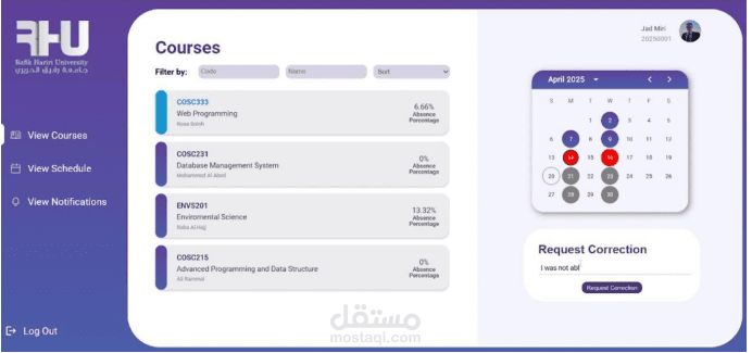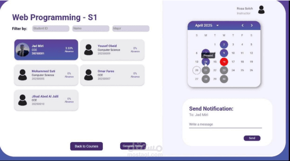 Interactive Dashboards: A frontend built with React and Material UI displays attendance, statistics, and student reports in a clear and user-friendly way.