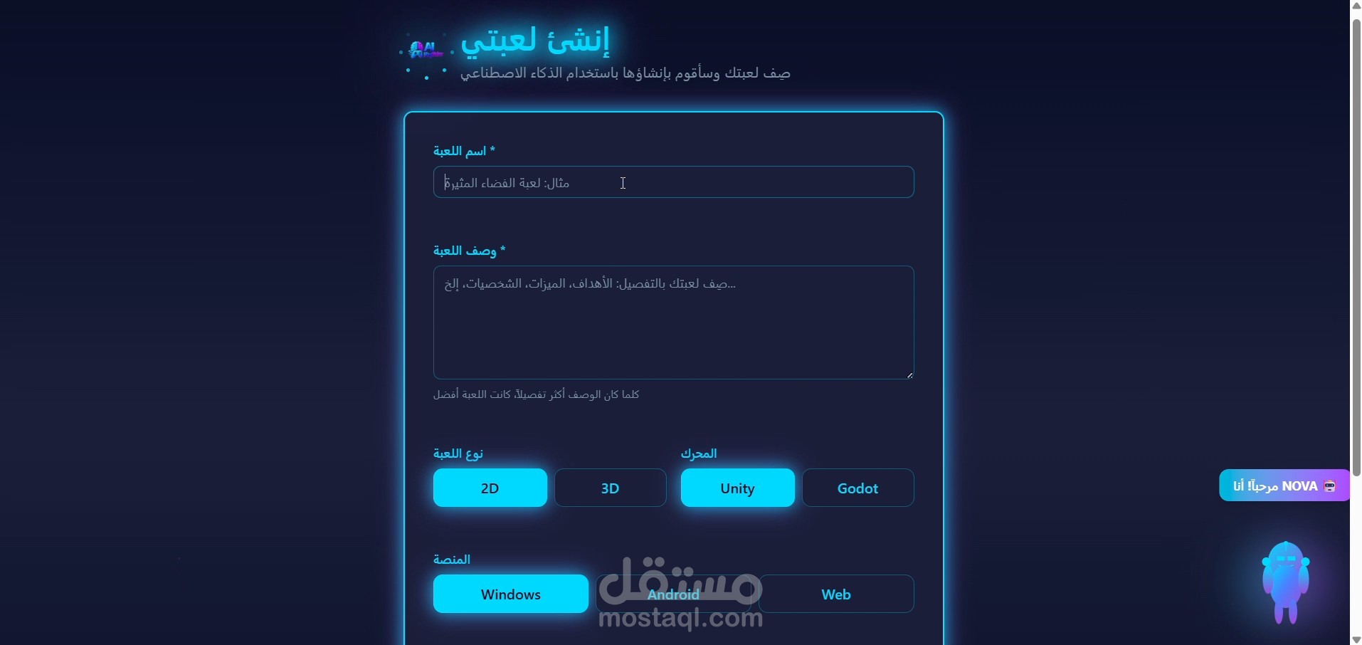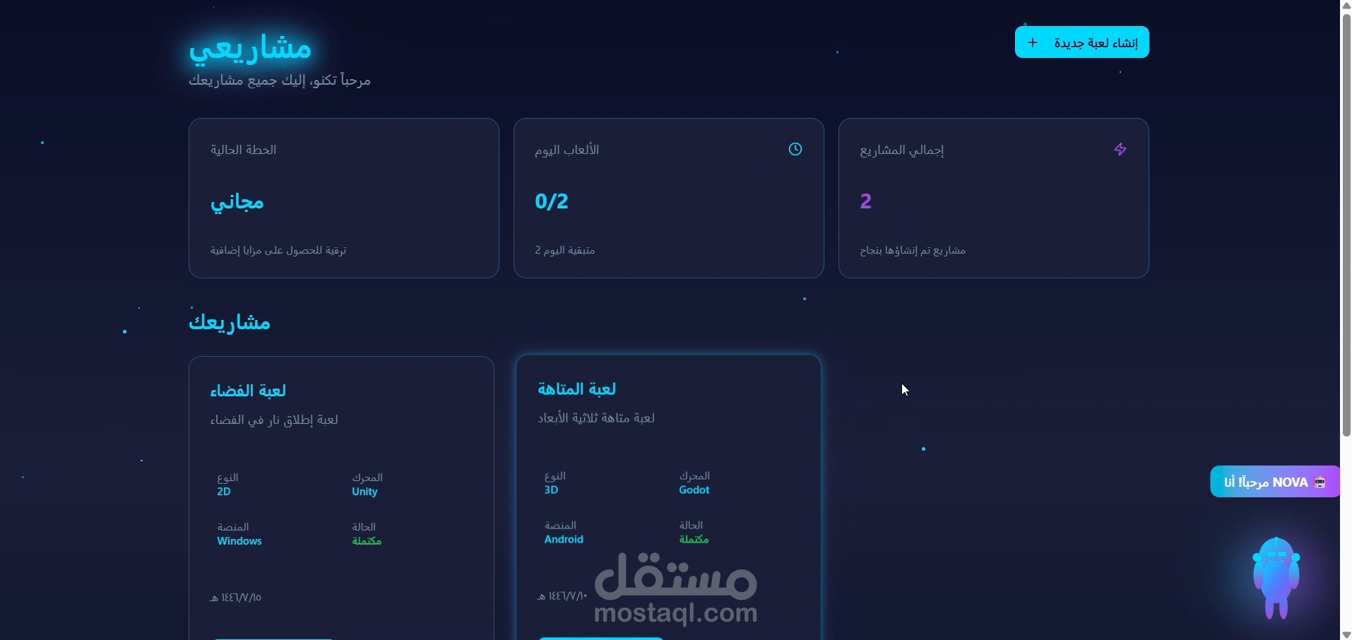 موقعي الخاص هو ذكاء اصطناعي متقدم قمت ببرمجته ليقوم ببرمجة وإنشاء ألعاب كاملة حسب وصف المستخدم واختياراته وهو مرتبط بأكثر من ذكاء اصطناعي ويعمل كنظام ذكاء اصطناعي مستقل وقوي قادر على توليد ألعاب على أي محرك ألعاب أو منصة يتم اختيارها من قبل المستخدم سيتم إطلاقه قريبًا في مؤتمر تقني في الأردن.