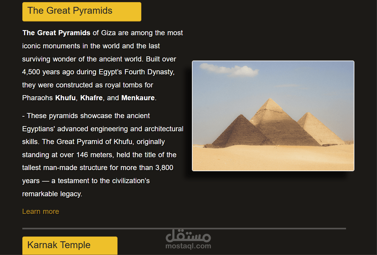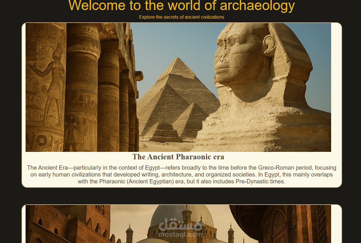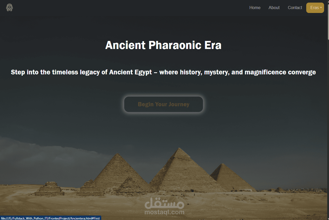 قمت بتطوير موقع تعريفي تفاعلي عن الحضارة المصرية القديمة باستخدام