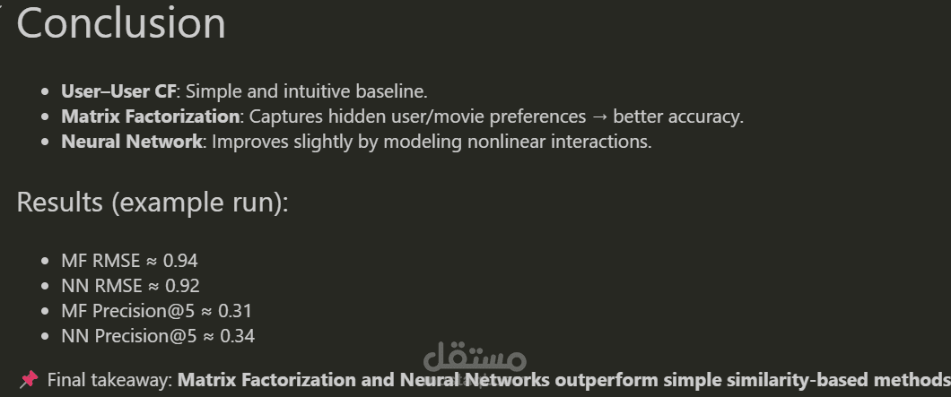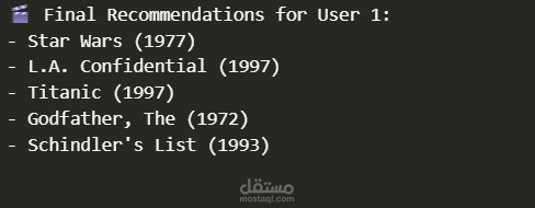 النتيجة: نظام يقدم توصيات مخصصة تزيد من تفاعل المستخدم ورضاه.