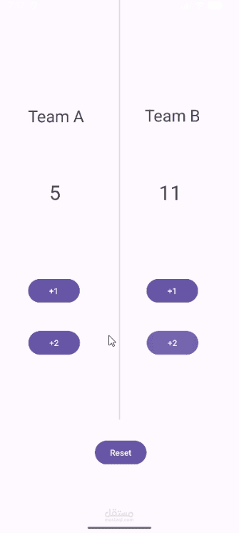 تطبيق اندرويد بسيط خاص بKabaddi Counter يظهر فيه عداد للفرقين و يمكن اضافه 1 او 2 نقاط لكل فريق مع وجود زر Reset