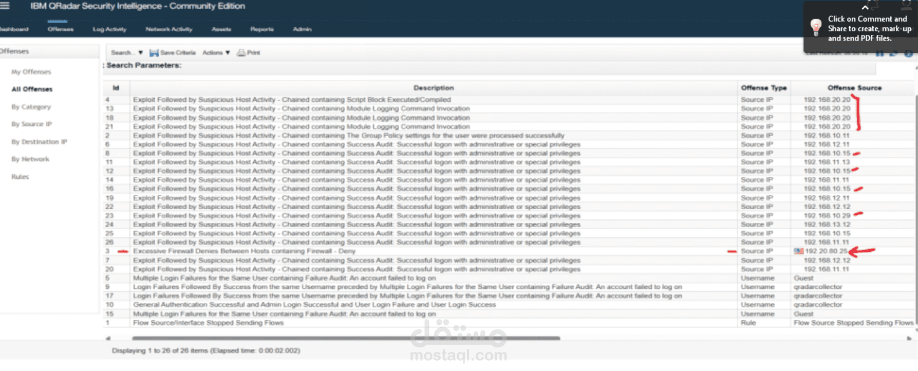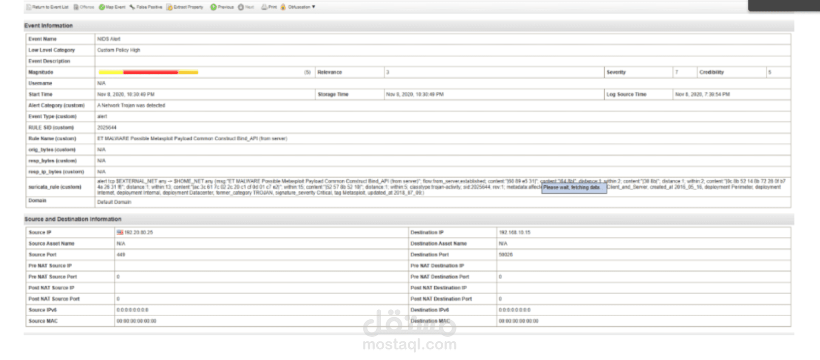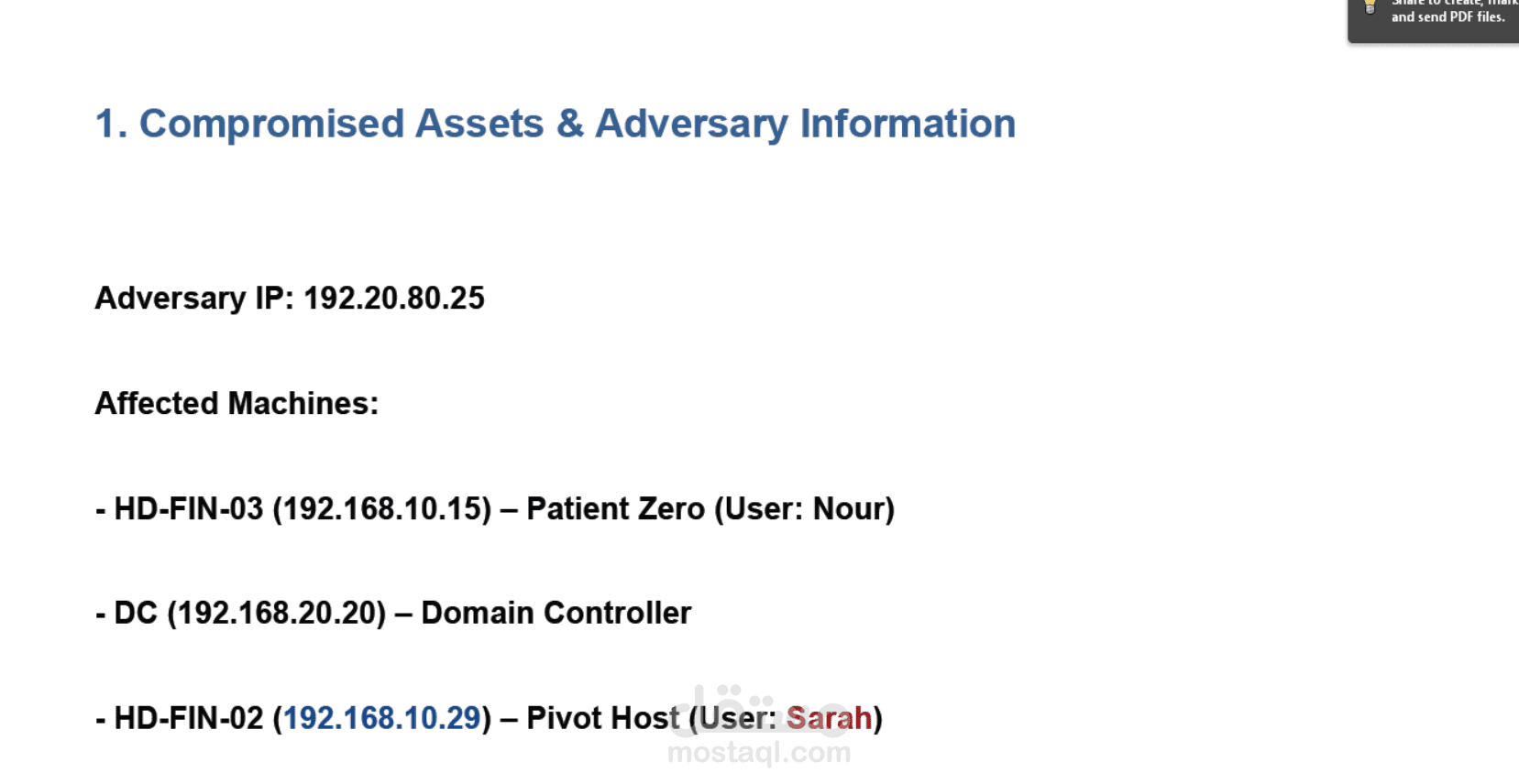 تحليل حادثة اختراق متقدمة استهدفت شبكة مؤسسة مالية باستخدام نظام SIEM (IBM QRadar)، مع إعداد تقرير Incident Response احترافي يوضح دورة الهجوم كاملة بدءًا من نقطة الدخول وحتى مرحلة تسريب البيانات.