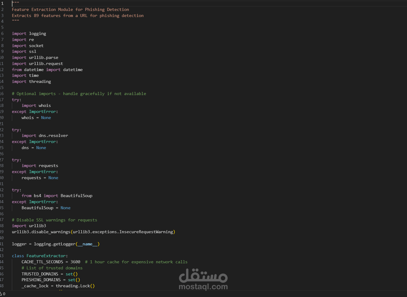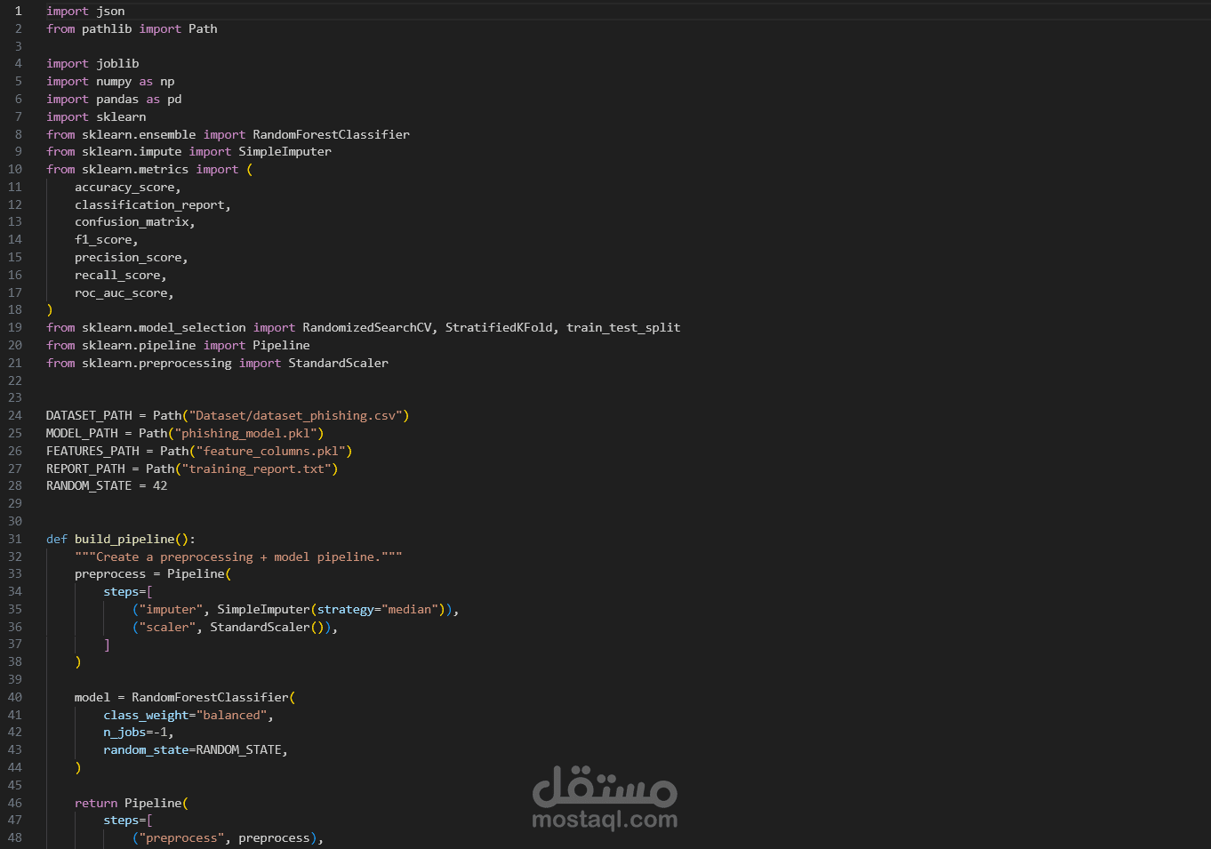 قمت بتطوير نظام ذكي في مجال الأمن السيبراني يهدف إلى الكشف عن مواقع التصيد الاحتيالي (Phishing Websites) وتحليل الروابط المشبوهة باستخدام تقنيات التعلم الآلي (Machine Learning).