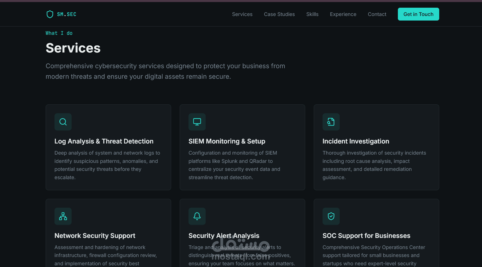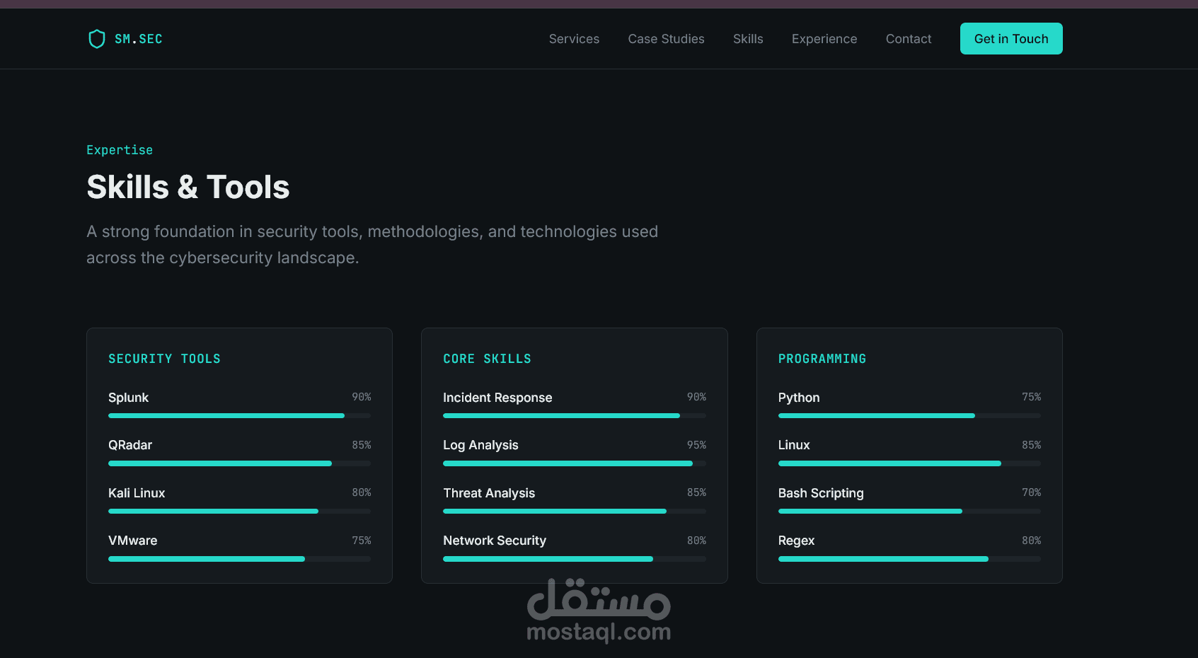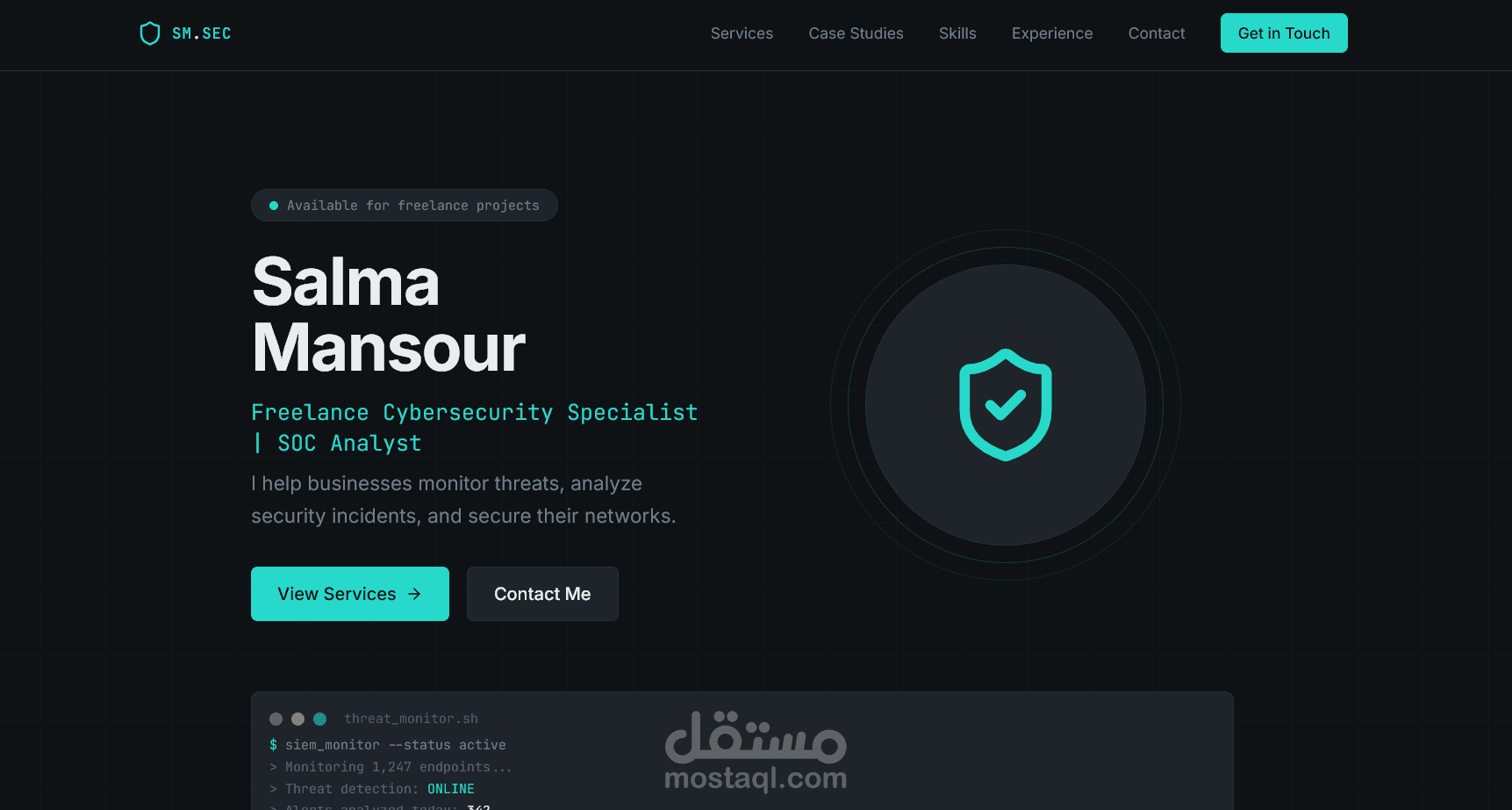 قمت بتصميم وتطوير موقع Portfolio احترافي لمتخصص في الأمن السيبراني (SOC Analyst) باستخدام Next.js و React.