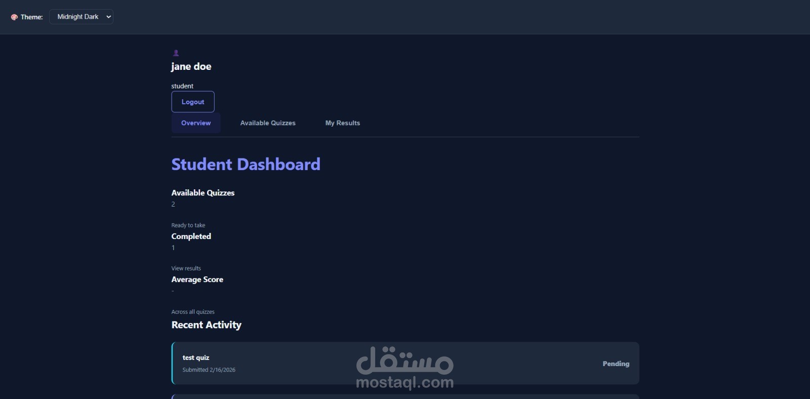 منصة كاملة لإدارة الاختبارات والاختبارات الإلكترونية، تم بناؤها باستخدام HTML و CSS و JavaScript فقط دون أي إطارات عمل خارجية.