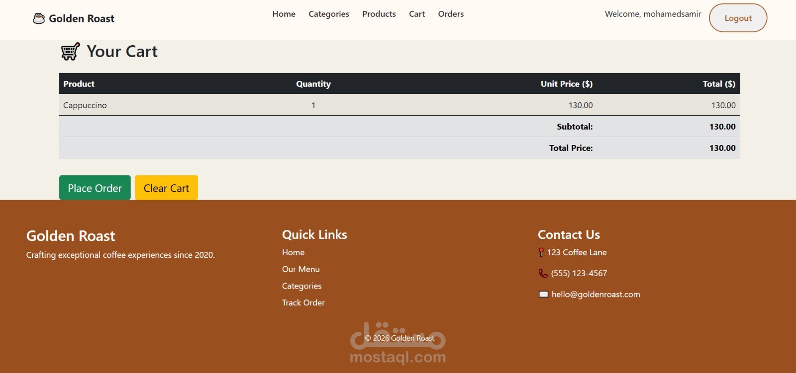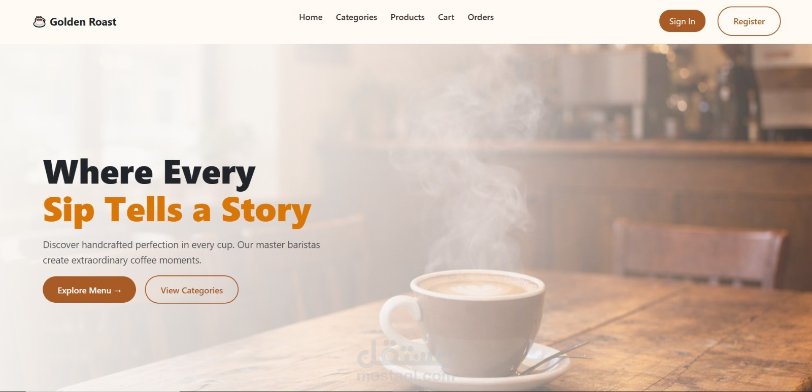 تطبيق ويب متكامل لإدارة المقاهي بنظام MVC - حل ذكي لإدارة الطلبات والمخزون والعملاء
